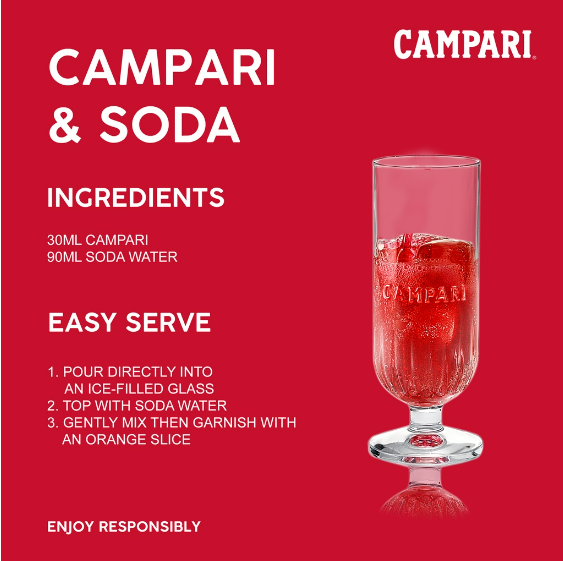• Campari là món rượu khai vị cổ điển vượt thời gian, đầy vẻ lôi cuốn và đồng thời là trung tâm của các loại cocktail đặc trưng như Negroni và Americano.