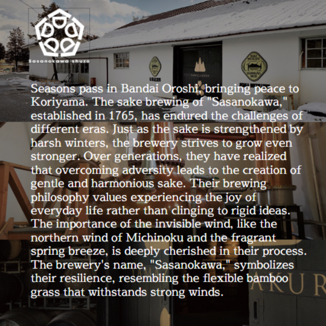 Được làm bằng 100% "Fukunoka" là loại gạo mới phù hợp để ủ rượu sake do tỉnh Fukushima sản xuất, được lên men trong thời gian dài ở nhiệt độ thấp. Bạn có thể thưởng