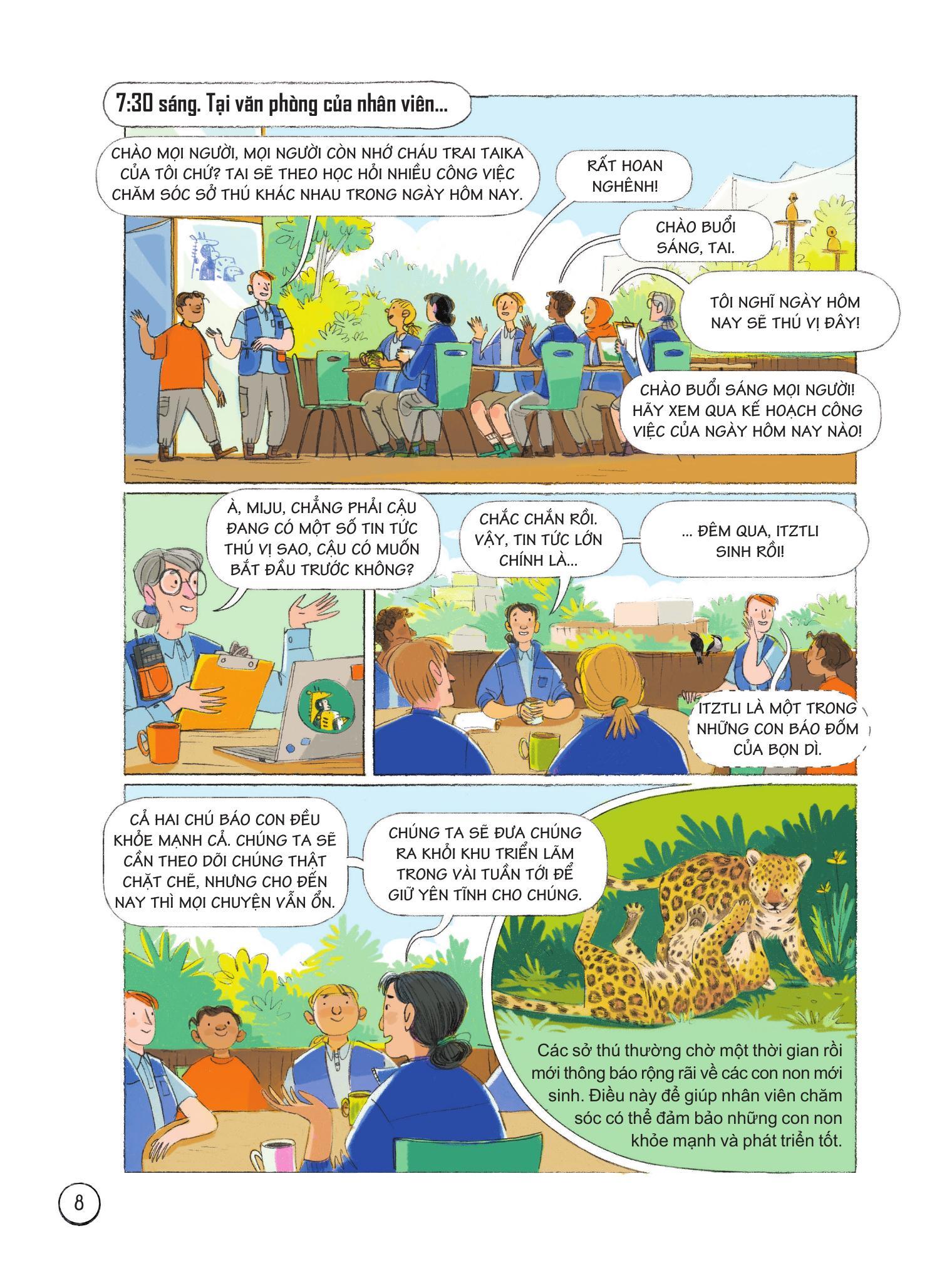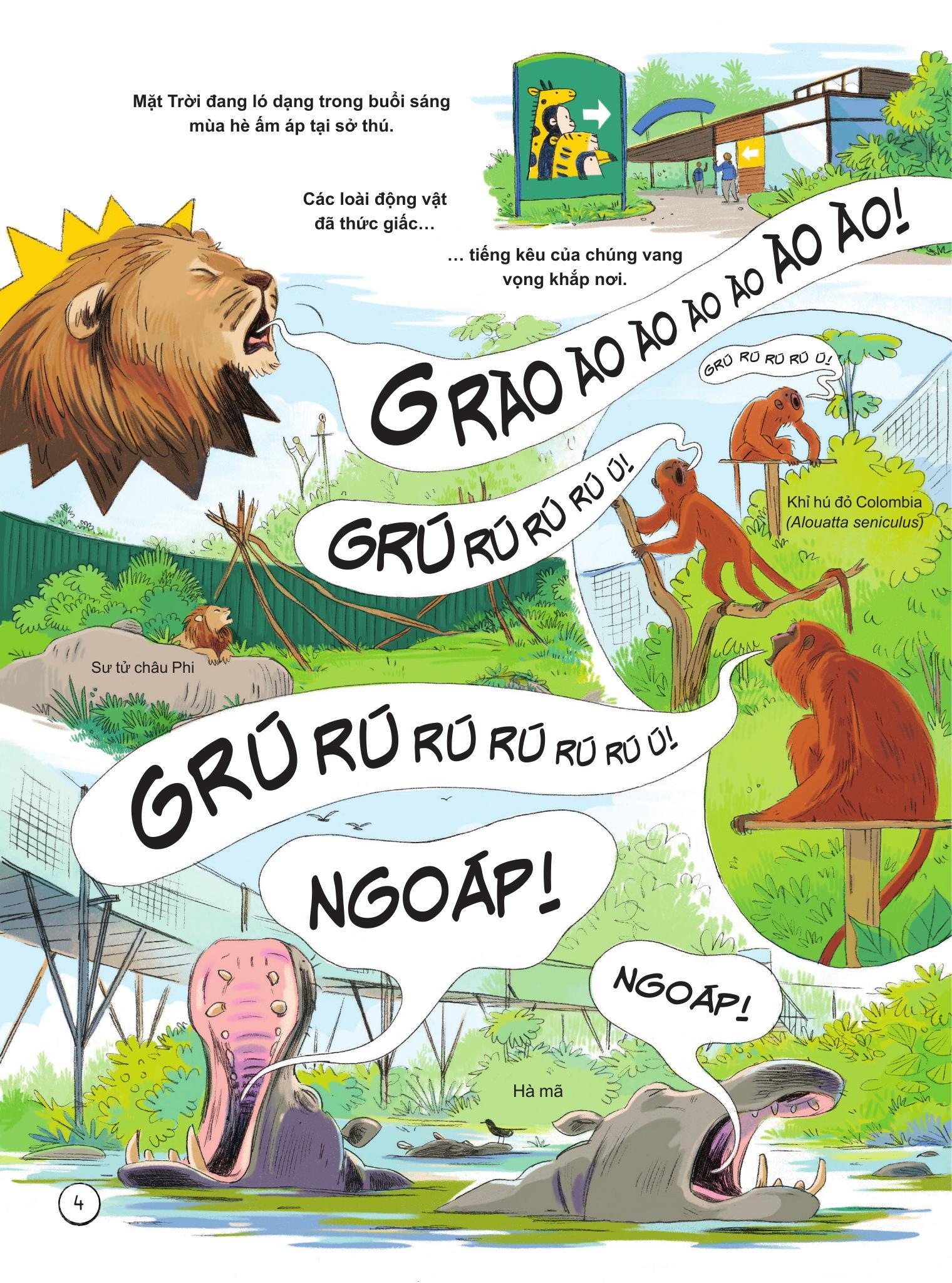 24 Giờ Trong Sở Thú Bạn sẽ được tìm hiểu điều gì xảy ra trong sở thú từ lúc bình minh cho đến khi màn đêm buông xuống. Người ta kiểm tra sức khỏe cho một con trăn khổng lồ ra sao, cách sở thú chuẩn bị cho sự kiện giới thiệu một động vật mới đến thế nào, điều gì sẽ xảy ra nếu một con vật bị mất tích? Và nhất là: Làm thế nào để xử lý hàng tấn chất thải động vật mỗi ngày? Quả thật, công việc tại sở thú chẳng hề đơn giản như bạn nghĩ đâu! Qua từng giờ đồng hồ, bạn đọc sẽ được tìm hiểu vô vàn những bí mật nơi "hậu trường" của sở thú đấy. Nhanh lên nào, chúng m.ình cùng khám phá ngay thôi! Sách khoa học theo định dạng truyện tranh, đưa các bạn nhỏ theo chân những nhân viên sở thú khám phá hàng trăm loài động vật trong sở thú