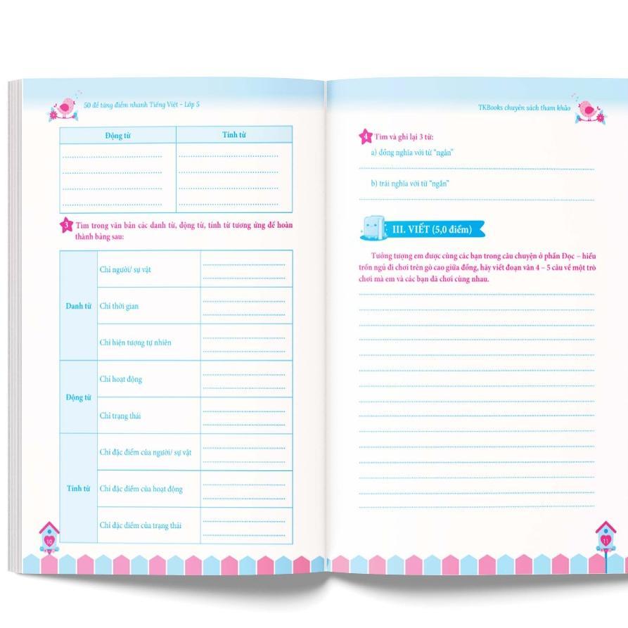 ✨Sách - 50 Đề Tăng Điểm Nhanh Tiếng Việt Lớp 5 – Học Nhẹ Nhàng – Dễ Dàng Điểm Cao - MCBooks