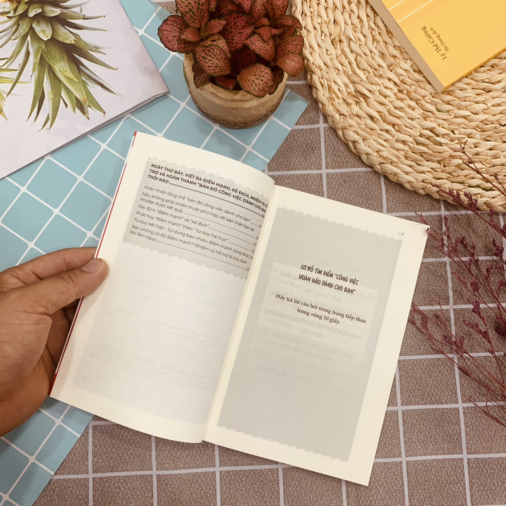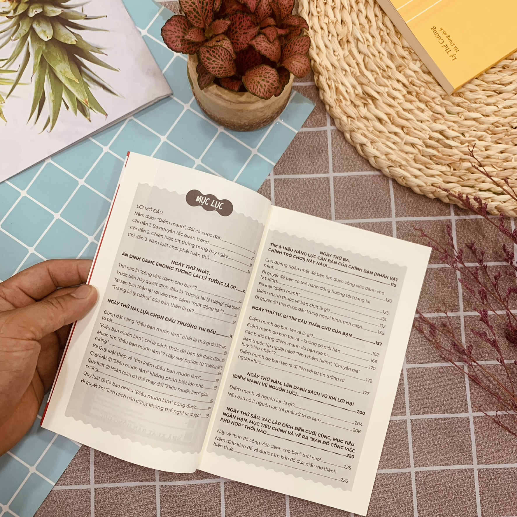 Nếu có một cuốn sách giúp bạn tìm được một “công việc", giúp bạn kiếm được đúng mức lương như mong muốn, luôn làm bạn thật hào hứng mỗi sáng thức dậy, luôn thấy đủ đầy và tràn trề sinh lực sẵn sàng lao vào việc, thì bạn có muốn sở hữu nó không. Cuốn sách 7 Ngày khám phá điểm mạnh của bản thân được viết dưới dạng câu chuyện với nhân vật chính là một cô chị gái đang là nhân viên văn phòng, hằng ngày đi làm nhưng vẫn luôn canh cánh rằng bản thân cứ mãi như này có được không? Và cậu em trai học đại học, đang trong cuộc chiến cam go tìm việc làm. Hãy theo chân các nhân vật trong cuốn sách này, chỉ sau 7 ngày, bạn sẽ tìm được: 1 - Điều mà bạn muốn làm, 2 - Điểm mạnh của bản thân, 3 - Kế hoạch cụ thể để có được công việc phù hợp dành cho bạn.  Nội dung cuốn sách 7 Ngày khám phá điểm mạnh của bản thân Có phải bạn đã từng nghĩ điểm mạnh là những người có kỹ năng, tài nghệ xuất chúng, những người có địa vị hay chức tước cao như “đứng đầu toàn quốc", “tốt nghiệp đại học top đầu", hay những người mang sẵn năng khiếu từ khi ra nhu “chạy nhanh như gió", “thông minh sáng dạ" Nếu bạn chỉ toàn liên tưởng tới mấy những điều đó thì đó thực sự đáng báo động. Đừng để mình là “đứa trẻ đi lạc" trong hành trình tìm kiếm điểm mạnh của mình nhé.