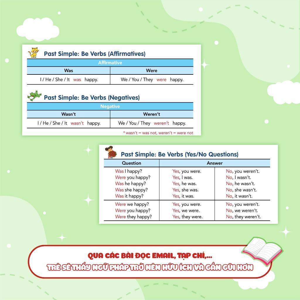 Phần ngữ pháp đọc hiểu cung cấp các bài đọc (email, tạp chí, thư,…) giúp các con áp dụng ngữ pháp vào trong từng ngữ cảnh và củng cố kiến thức đã học. Điều này cũng giúp các bài học trở nên sinh động và thú vị hơn.