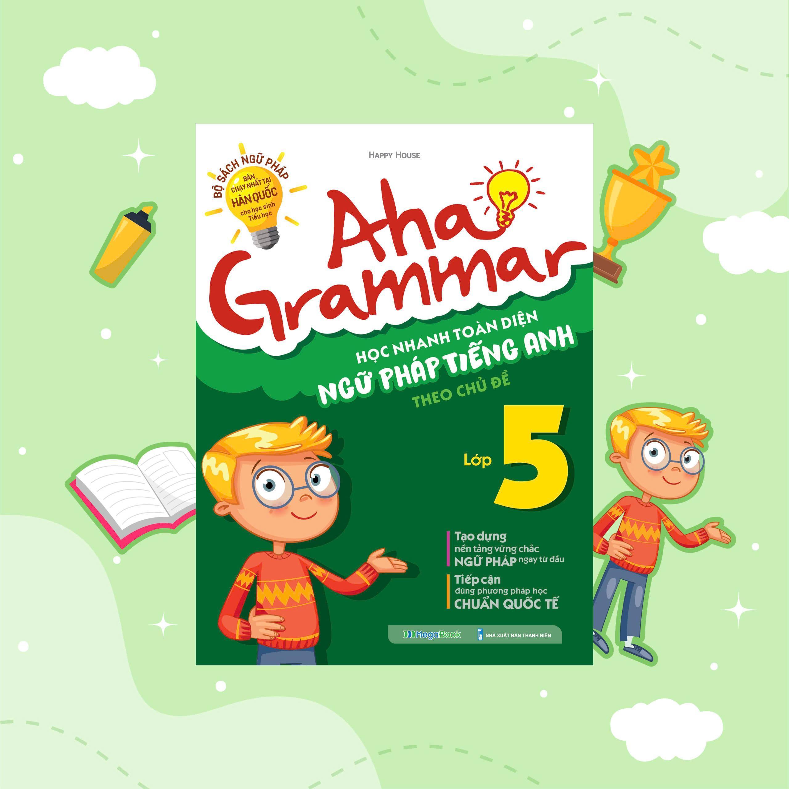 Aha Grammar Học nhanh toàn diện ngữ pháp Tiếng Anh lớp 5 theo chủ đề là cuốn sách tổng hợp các chủ đề ngữ pháp của chương trình tiếng Anh lớp 5 theo phương pháp chuẩn Quốc tế.