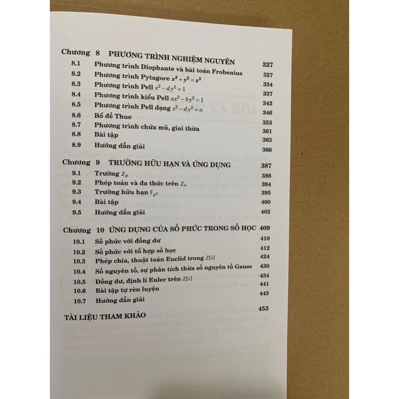 Mua tại TiktokNội dung gồm có: Chương 1. Phép chia, ước và bội Chương 2. Số nguyên tố Chương 3. Đồng dư và vành Zn Chương 4. Đa thức với hệ số nguyên Chương 5. Hàm số học Chương 6. Định giá P-ADIC và ứng dụng Chương 7. Đông dư trên tập số hữu Đông dư trên tập số hữu tỉ Chương 8. Phương trình nghiệm nguyên Chương 9. Trường hữu hạn và ứng dụng Chương 10. Ứng dụng của số phức trong số học