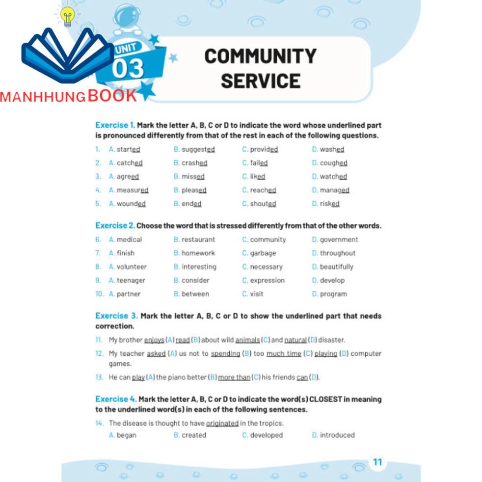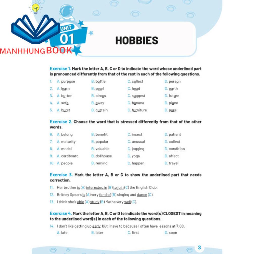 Phần thứ nhất gồm các bài tập ôn luyện được biên soạn theo các chủ đề dựa trên chương trình sách giáo khoa mới nhất. Phần thứ hai là phần luyện để học sinh giỏi của các trường. Bài tập dành cho mỗi đơn vị bài học bao gồm hơn 50 câu với đủ các dạng bài, ngữ âm, từ vựng và ngữ pháp.