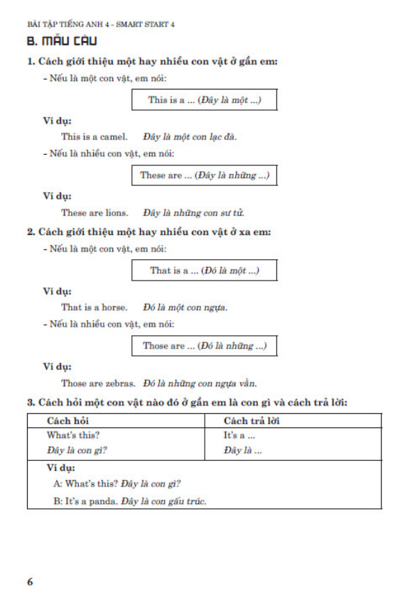 Lưu ý trước khi làm bài tập, các em nên xem qua phần từ vựng và ngữ pháp ở đầu mỗi bài. Phần này không những chú thích ý nghĩa của từng từ vựng mà còn giảng giải chi tiết cách dùng từng mẫu câu. Điều này sẽ giúp các em làm tốt tất cả các bài tập trong sách.