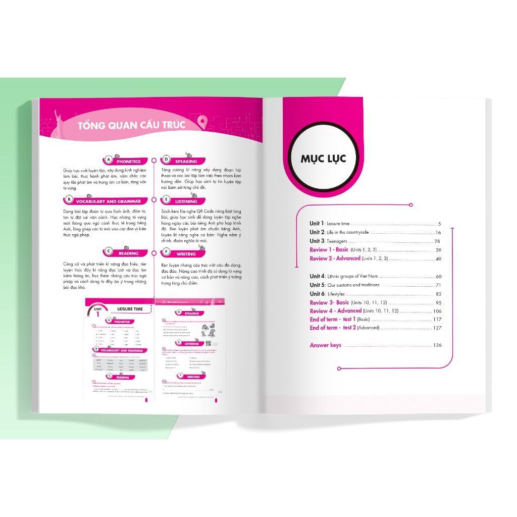 - Bài tập rèn luyện đa dạng, cơ bản và nâng cao Bài tập được phân chia theo 2 cấp độ, cơ bản và nâng cao. Hệ thống bài tập luyện 4 kỹ năng cơ bản giúp các em ôn tập kiến thức trên lớp; bài tập mở rộng, nâng cao để các em rèn luyện và làm quen với các kì kiểm tra, đánh giá. Các bài tập về 4 kỹ năng được liên kết với nhau theo logic bài học giúp cảm em cảm thấy tự tin và phát triển toàn diện kỹ năng nghe, nói, đọc, viết tiếng Anh