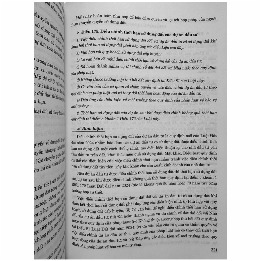 Nhằm phổ biến đến Quý Cơ quan, Đơn vị và Quý khách hàng thân thiết nắm bắt kịp thời những quy định mới nêu trên. Nhà sách Nam Việt xin trân trọng giới thiệu cuốn sách: Bình Luận Khoa Học Luật Đất Đai năm 2024 do ThS. NCS. Tạ Đình Tuyên và ThS. NCS. Nguyễn Văn Huy biên soạn. Đây là cuốn sách bình luận chuyên sâu, giải thích khoa học từng điều luật của Luật Đất đai, giúp độc giả hiểu rõ hơn về Luật Đất đai, từ đó áp dụng vào thực tiễn đời sống.