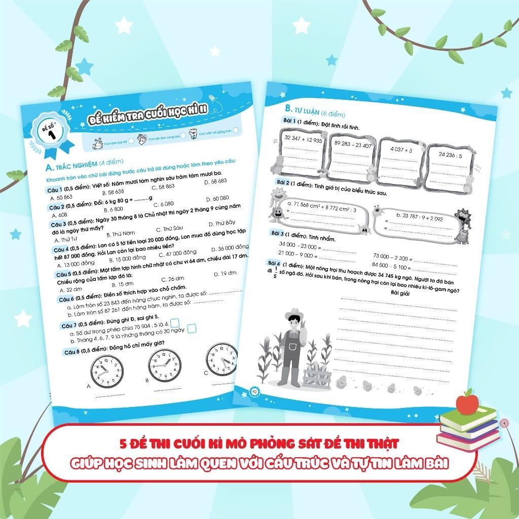 Đề ôn luyện và kiểm tra Toán lớp 3 tập 2 là một "trợ thủ" đắc lực giúp các em học sinh có thể tự ôn luyện sau mỗi giai đoạn học tập: ôn tập ngắn sau 2-3 tuần học, ôn tập giữa học kỳ và ôn tập cuối học kỳ - cuối năm học.