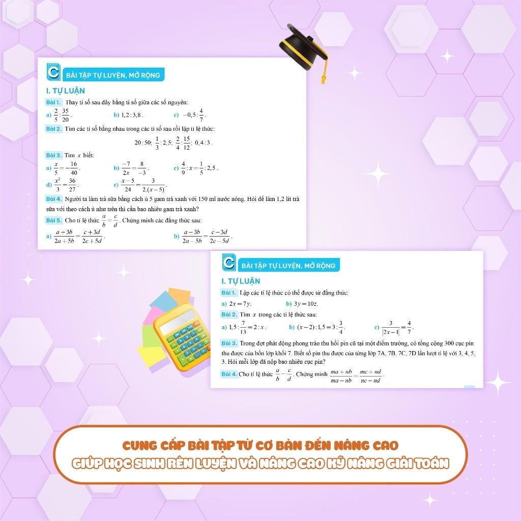 Bổ sung thêm bài tập tự luyện từ cơ bản đến nâng cao, mở rộng theo nội dung của mỗi bài học, giúp các em tự rèn luyện và trau dồi thành thục kỹ năng giải các dạng toán từ dễ đến khó.