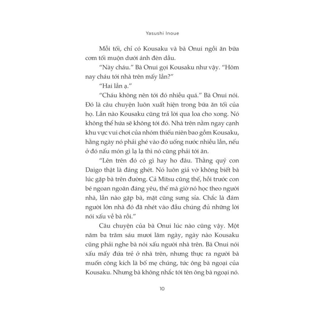 Tác giả: Yasushi Inoue Dịch giả: Vương Hải Yến Nhà xuất bản: Phụ nữ Số trang: 336 Kích thước: 14x20.5 cm Ngày phát hành: 03-2023 Rời xa cha mẹ từ khi mới lên năm, cậu bé Kousaku