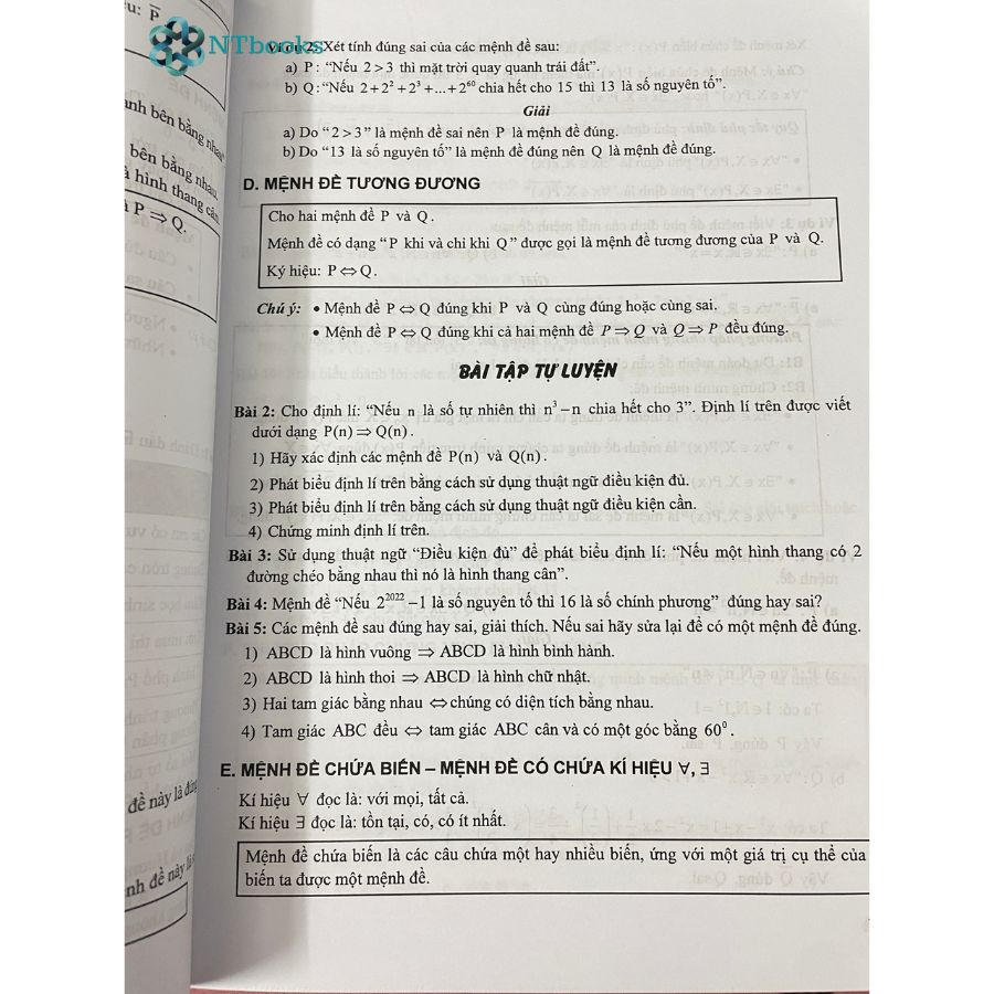 1. Nội dung sách Tự học Toán học lớp 10: Tập 1: - Chương 1: Mệnh đề và tập hợp (5 chủ đề) - Chương 2: Bất phương trình - Hệ bất phương trình (4