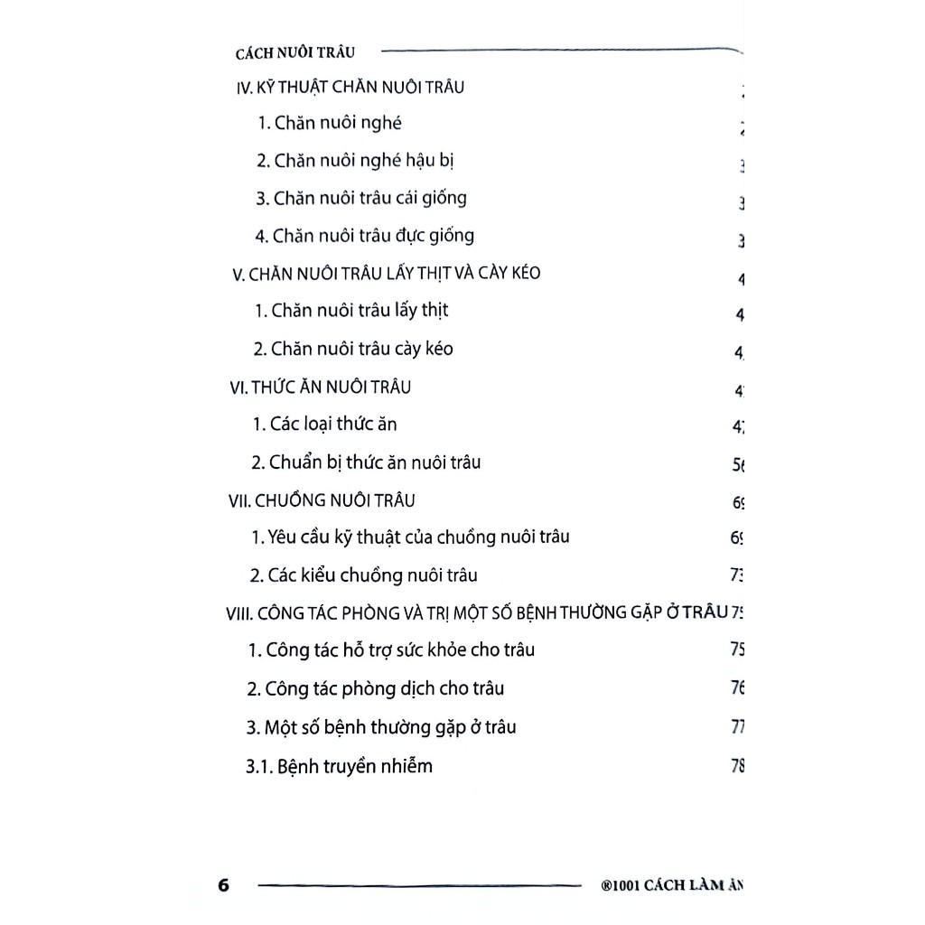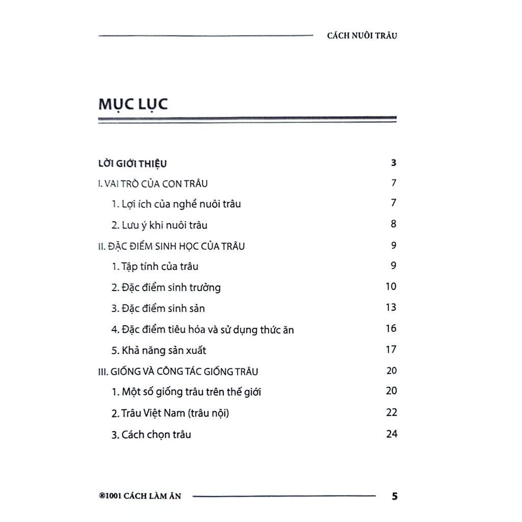 "Cách Nuôi Trâu" ra đời với mục đích ghi lại, lưu truyền những kiến thức và kỹ thuật truyền thống trong việc nuôi dưỡng, chăm sóc đàn trâu. Cuốn sách hướng dẫn cách chọn giống, xây dựng chuồng trại phù hợp, chăm sóc dinh dưỡng thức ăn và nước uống, phòng trị bệnh tật, kỹ thuật huấn luyện trâu kéo cày. Đây là những kinh nghiệm quý giá được tổng hợp, chắt lọc từ nhiều thế hệ nông dân lão luyện.