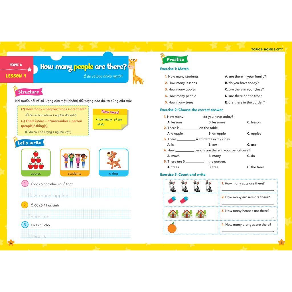 - Nội dung ngắn gọn, dễ học: 100 cấu trúc được gói gọn trong 10 chủ đề, mỗi chủ đề bao gồm 10 bài học Với các chủ đề quen thuộc và gần gũi trong cuộc sống như Greetings, Family & Friends, Study & School… không chỉ giúp các em tiếp thu kiến thức Ngữ pháp hiệu quả hơn mà còn biết cách vận dụng vào giao tiếp thực tế hàng ngày.