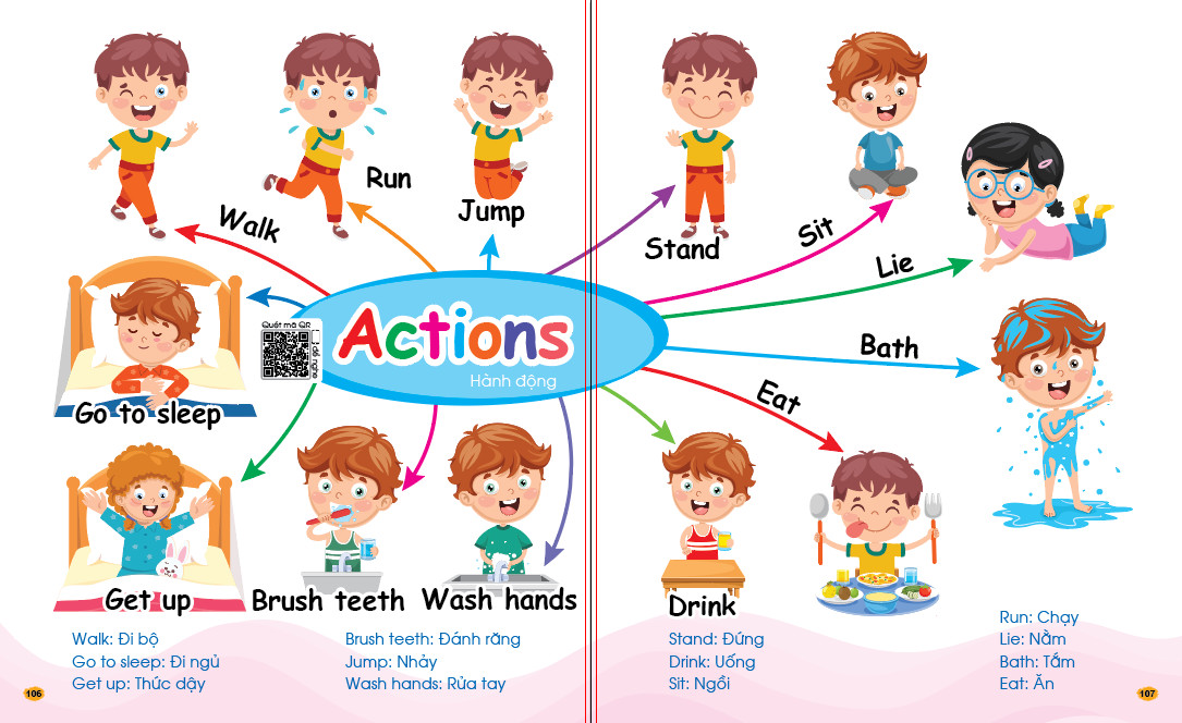 Đặc biệt, cuốn sách có kèm theo File đọc từ vựng tiếng Anh giọng chuẩn bản địa, quét mã QR trên sách theo từng chủ đề, sẽ giúp trẻ luyện kĩ năng nghe tốt hơn và phát âm theo chuẩn hơn.