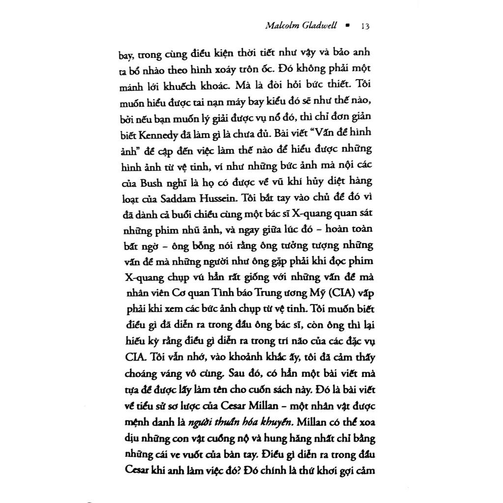 Mua tại TiktokGIỚI THIỆU SÁCH : Chú Chó Nhìn Thấy Gì? (Tái Bản ) Có cấu trúc và giọng văn cân nhắc chỉn chu, song bạn sẽ thấy 19 bài viết trong cuốn sách này đề cập đến những khía cạnh hoàn toàn khác nhau của cuộc sống từ việc: "Mù tạt giờ đây xuất hiện với cả tá chủng loại. Vì đây ketchup vẫn nguyên xi y dạng?" "Những điều về sức khỏe phụ nữ mà cha đẻ của thuốc ngừa thai không hề biết" "Cuộc sống của một người có đáng bị hủy hoại chỉ vì lời buộc tội đạo văn?"... Mỗi bài viết điều có khả năng thu hút bạn, khiến bạn phải ngẫm nghĩ, hay đem lại cho bạn ý niệm lờ mờ nào đó về trí não của kẻ khác". Hãy đọc và cùng khám phá những cuộc phiêu lưu của Gladwell để hiểu rõ hơn những hiện tượng xung quanh bạn, qua đó bồi đắp thêm kinh nghiệm sống cho bản thân. Cuốn sách chia làm ba phần: Phần thứ nhất: Những kẻ ám ảnh, những người tiên phong và những kiểu thiên tài nhỏ lẻ khác Phần thứ hai: Những luận thuyết, tiên lường và chuẩn đoán Phần thứ ba: Nhân phẩm, tính cách và trí tuệ