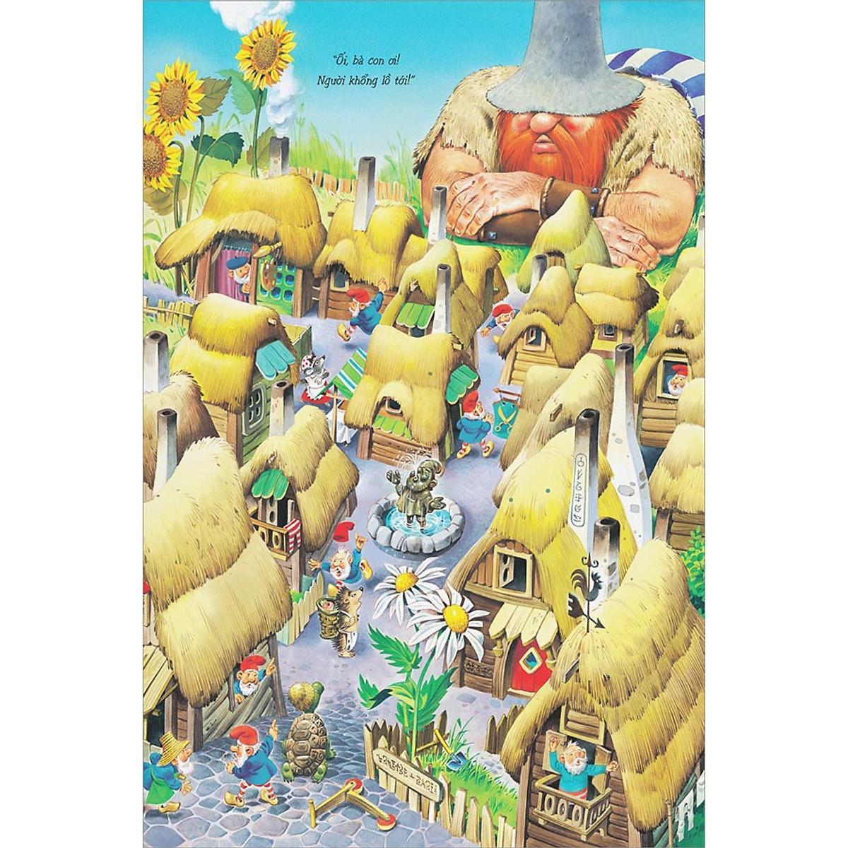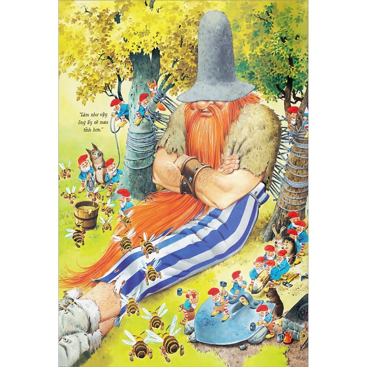 Khi ông khổng lồ Râu Đỏ tới ngôi làng của các thần lùn thì ông đang bị một trận đau răng kinh hồn. Ông sợ lắm, nhưng cụ thần lùn nha sĩ biệt hiệu Thập Giá lại hết sức hiền hòa và đã chữa răng đau cho ông. Tiếp theo, ông khổng lồ Râu Đỏ tìm được một chỗ ở trong một cái hang to, phải đương đầu chống lại một con Rồng kinh khủng tại một hồ nước sâu, và do tác động của chiếc Nhẫn thần kỳ mà thân thể nhỏ lại bằng kích thước một vị thần lùn! Nhưng rồi các bạn sẽ thấy, chưa hết đâu, đó thực sự chỉ mới là vài ba cuộc phiêu lưu mà thôi!