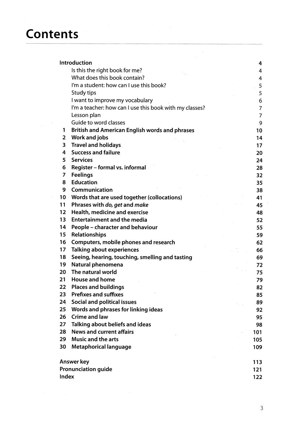 This book is an essential resource for learners who want to improve their English vocabulary. Each of the 30 units presents vocabulary relating to a particular topic using clear language and examples. This is followed by practice exercises to the learner will remember and be able to use what they have learnt with confidence in their written and spoken English.