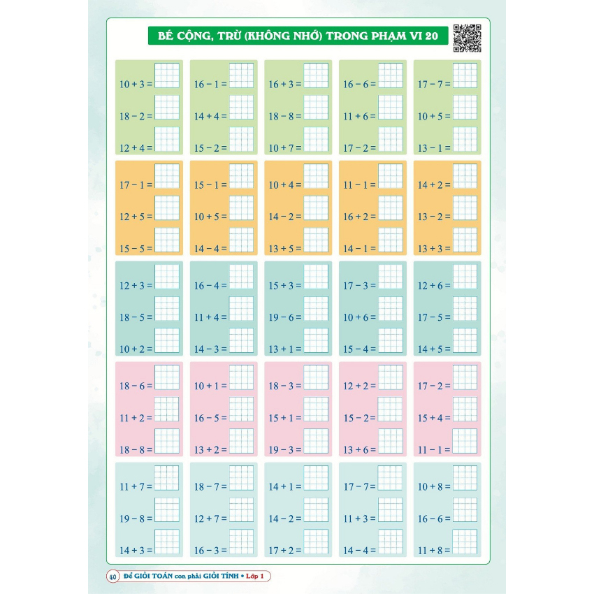 Bé cộng, trừ (không nhớ) trong phạm vi 20.