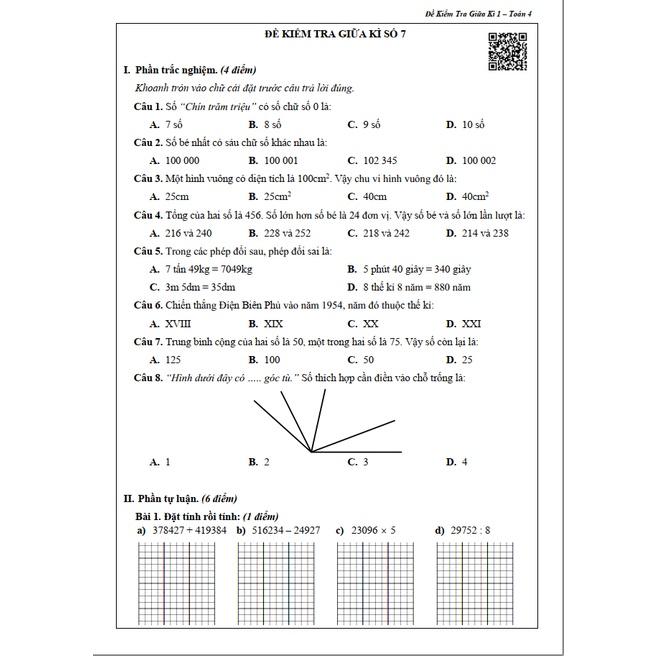 Đề số 1 | Đề kiểm tra giữa học kì 1 | Toán lớp 4 | Kết Nối | Thầy Nguyễn Văn Quyền
