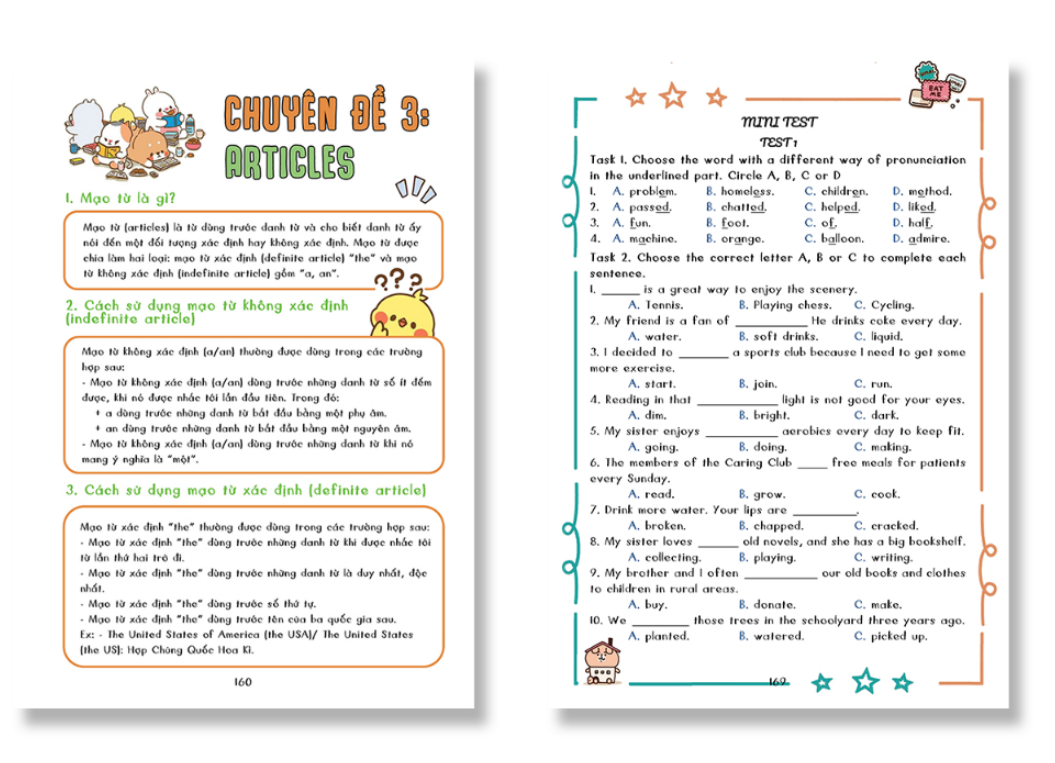 - Hệ thống 3 môn Toán, Văn, Anh trong cùng 1 cuốn => Giúp em học đều cả 3 môn chính