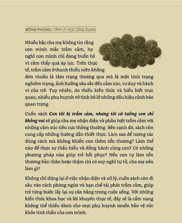 Không chỉ dừng lại ở việc nhận diện và xử lý, cuốn sách còn đi sâu vào cách phòng ngừa và hạn chế tái phát trầm cảm, giúp trẻ từng bước lấy lại sự cân bằng trong cuộc sống. Với những kiến thức khoa học và lời khuyên thực tế, đây sẽ là cẩm nang không thể thiếu dành cho mọi phụ huynh muốn bảo vệ sức khỏe tinh thần của con mình.