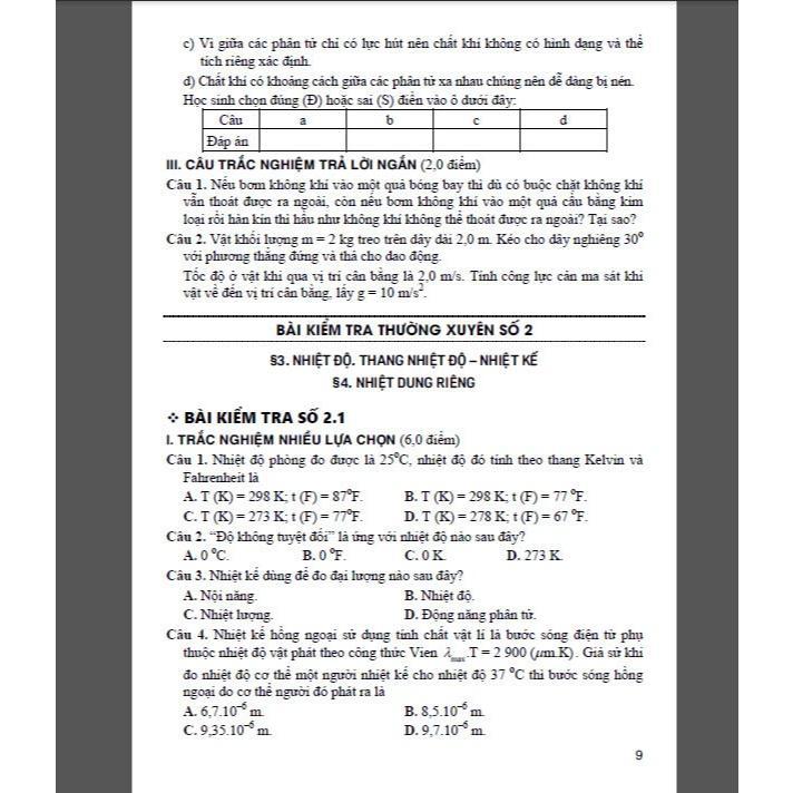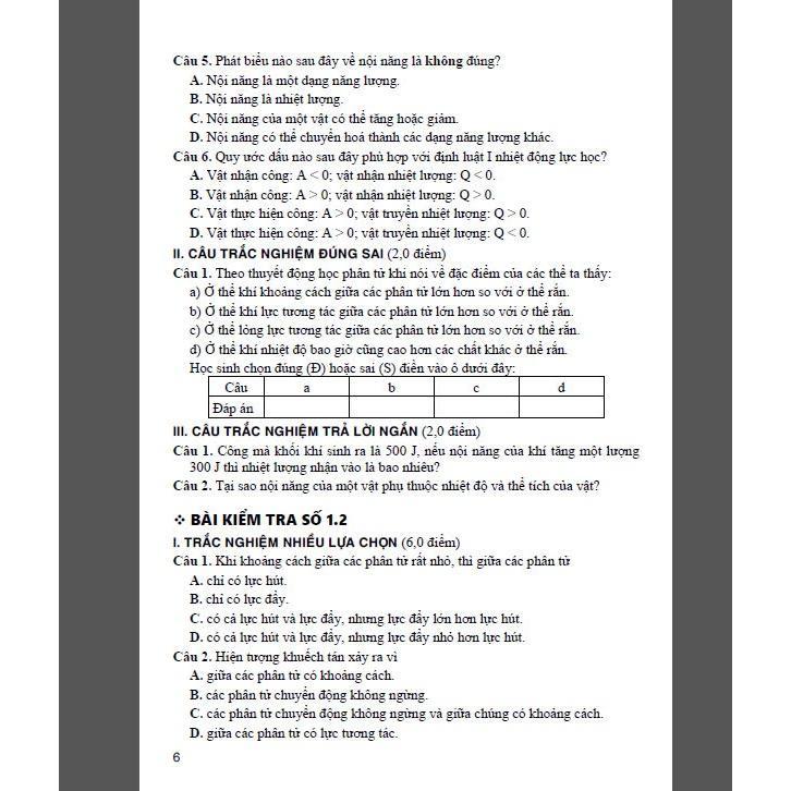– Cung cấp tư liệu các loại đề kiểm tra trắc nghiệm và tự luận bao gồm: Bài kiểm tra thường xuyên, bài kiểm tra giữa học kì (1 tiết), bài kiểm tra học kì (1 tiết) để các em học sinh tự đánh giá trình độ lí thuyết cũng như khả năng ứng dụng các kiến thức đã được học. Cuốn sách viết chủ yếu dựa theo nội dung bộ sách Kết nối tri thức với cuộc sống, tuy nhiên cũng có thể sử dụng cho các bộ sách khác.