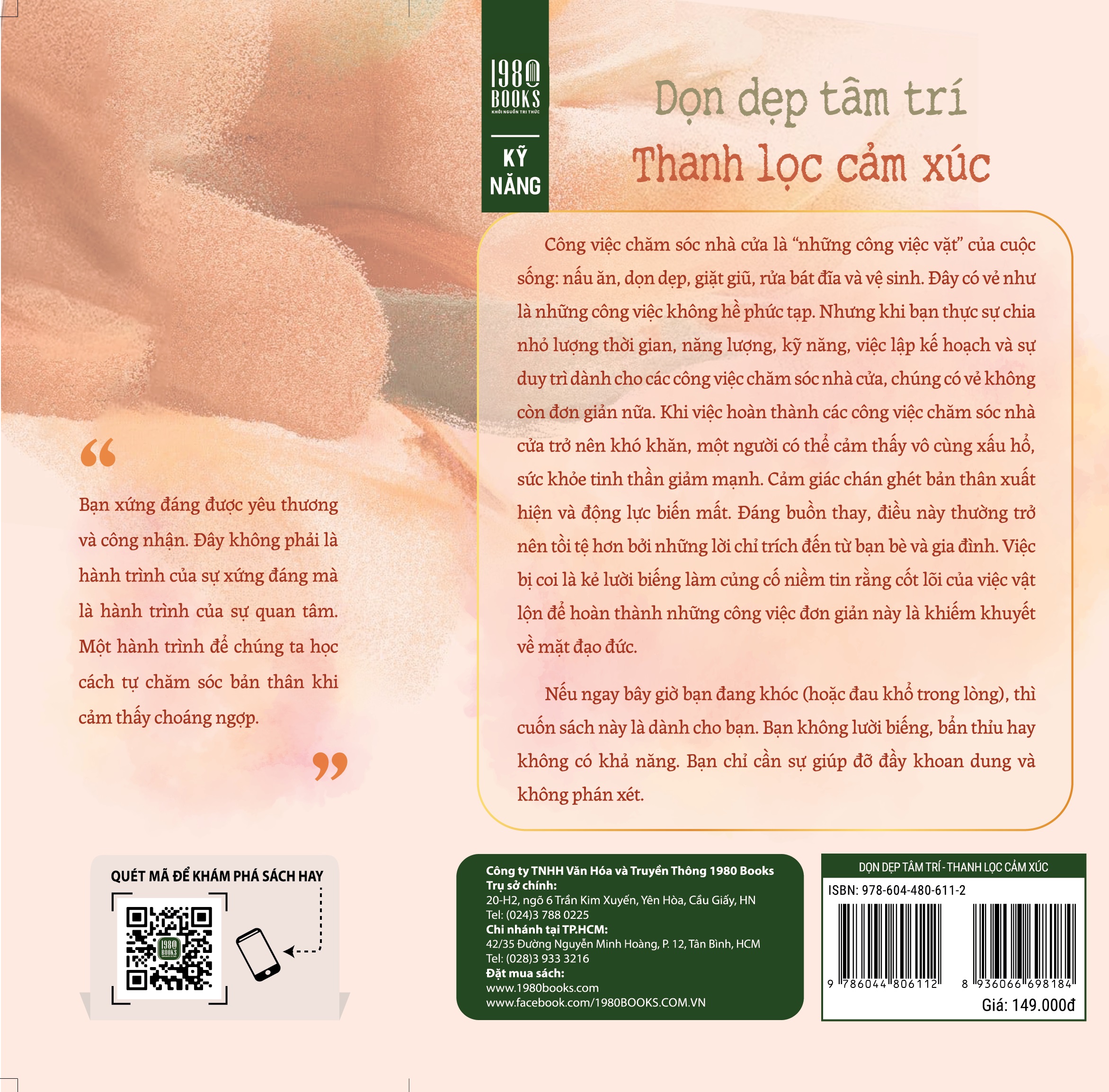 Dọn dẹp tâm trí – thanh lọc cảm xúc sẽ giúp bạn tìm ra cách duy trì một ngôi nhà đầy đủ chức năng - bất kể “chức năng” có ý nghĩa là gì đối với bạn. Bạn sẽ xây dựng được nền tảng của sự bao dung với bản thân và học cách ngừng tự nói xấu bản thân. Sau đó, bạn sẽ có nhiều động lực bắt đầu tìm hiểu những cách để vượt qua các rào cản chức năng của mình. Khi bạn bắt đầu cuộc hành trình này, hãy “chậm rãi,” “yên tĩnh”, “nhẹ nhàng”. Bạn xứng đáng được yêu thương và công nhận. Đây không phải là một hành trình của sự xứng đáng mà là một hành trình của sự quan tâm. Một hành trình để học cách tự chăm sóc bản thân khi cảm thấy choáng ngợp.