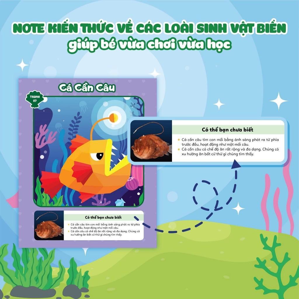 Bộ sách "Ghép hình sticker 3D Đại dương" (gồm 3 cuốn) là hành trình khám phá đại dương kỳ thú dành cho các bé mầm non. Mỗi cuốn sách giới thiệu nhiều loài sinh vật biển đa dạng, kèm theo các thông tin thú vị về chúng. Bé sẽ sử dụng các mảnh sticker 3D có sẵn để ghép thành hình con vật tương ứng, vừa chơi vừa học vừa khám phá những câu chuyện thú vị về cuộc sống đại dương. Bộ sách không chỉ giúp bé phát triển khả năng quan sát, tư duy và sự khéo léo, bộ sách còn nuôi dưỡng tình yêu thiên nhiên và thắp lên ngọn lửa khám phá trong tâm hồn trẻ thơ.
