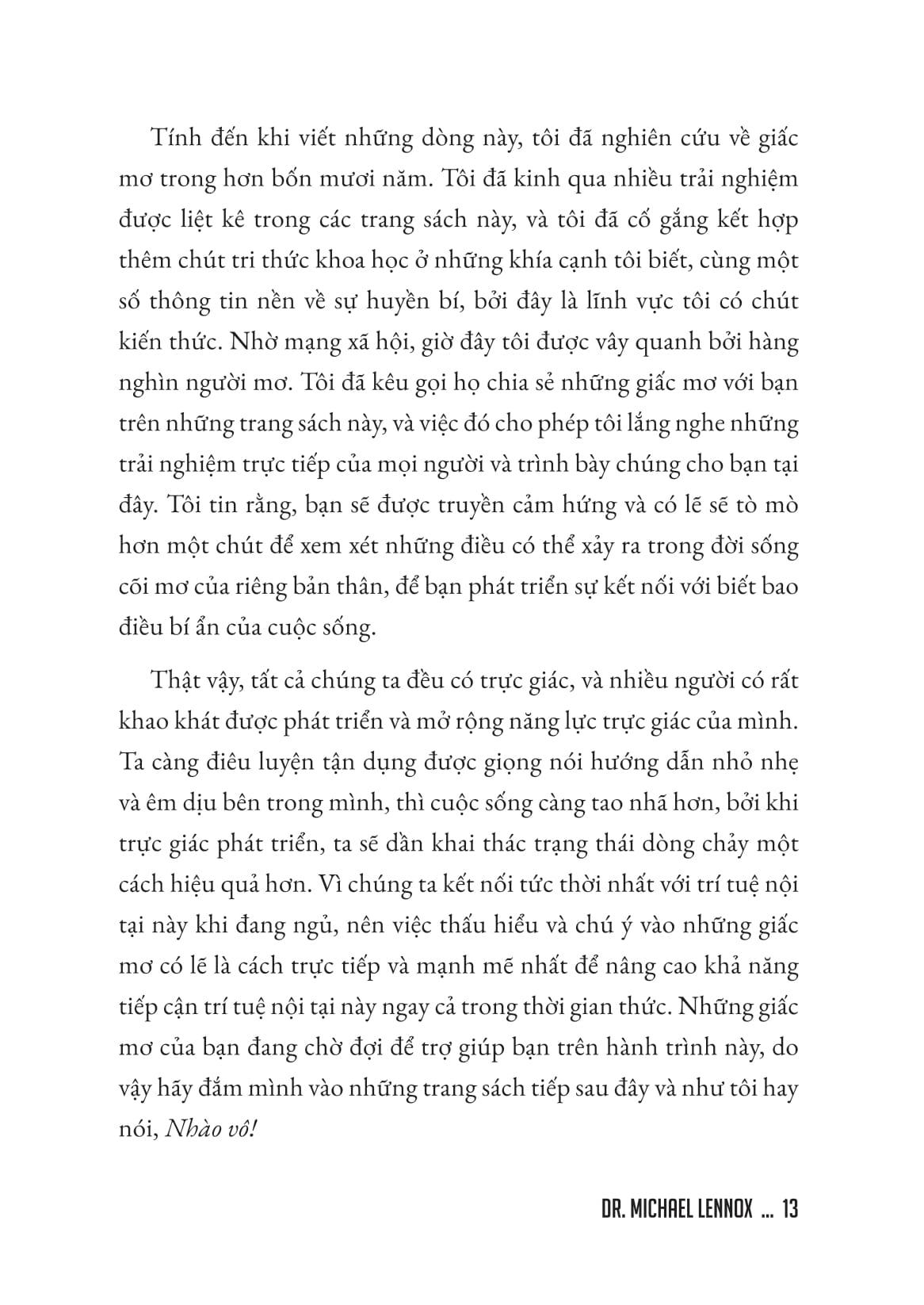 Giải Mộng - Giải Mã Mối Liên Kết Giữa Trực Giác Và Giấc Mơ Giấc mơ không đơn thuần là những hình ảnh thoáng qua trong tâm trí khi ta say ngủ. Chúng là cánh cửa dẫn vào thế giới trực giác, tâm linh và những chiều không gian huyền bí mà ta ít khi nhận ra khi tỉnh thức. Trong GIẢI MỘNG - Giải mã mối liên kết giữa trực giác và giấc mơ, Tiến sĩ Michael Lennox sẽ giúp bạn khai phá sức mạnh tiềm ẩn của giấc mơ, mở ra con đường kết nối với trực giác thông qua nghệ thuật giải mã giấc mơ. Dựa trên chính những trải nghiệm của ông và hàng ngàn khách hàng, Dr. Lennox phân chia giấc mơ thành nhiều dạng đặc biệt như giấc mơ tiên tri, giấc mơ sáng suốt, giấc mơ chung, giấc mơ thăm viếng… Bạn sẽ học cách nhìn thấy dấu hiệu của tương lai, đón nhận thông điệp từ người đã khuất và bước vào những hành trình của trực giác và tâm trí đầy huyền diệu. Không dừng lại ở việc diễn giải giấc mơ, GIẢI MỘNG còn mang đến những phương pháp thực hành cụ thể để khai mở tiềm năng tâm linh và thậm chí biến những cơn ác mộng thành cơ hội chuyển hóa bản thân.