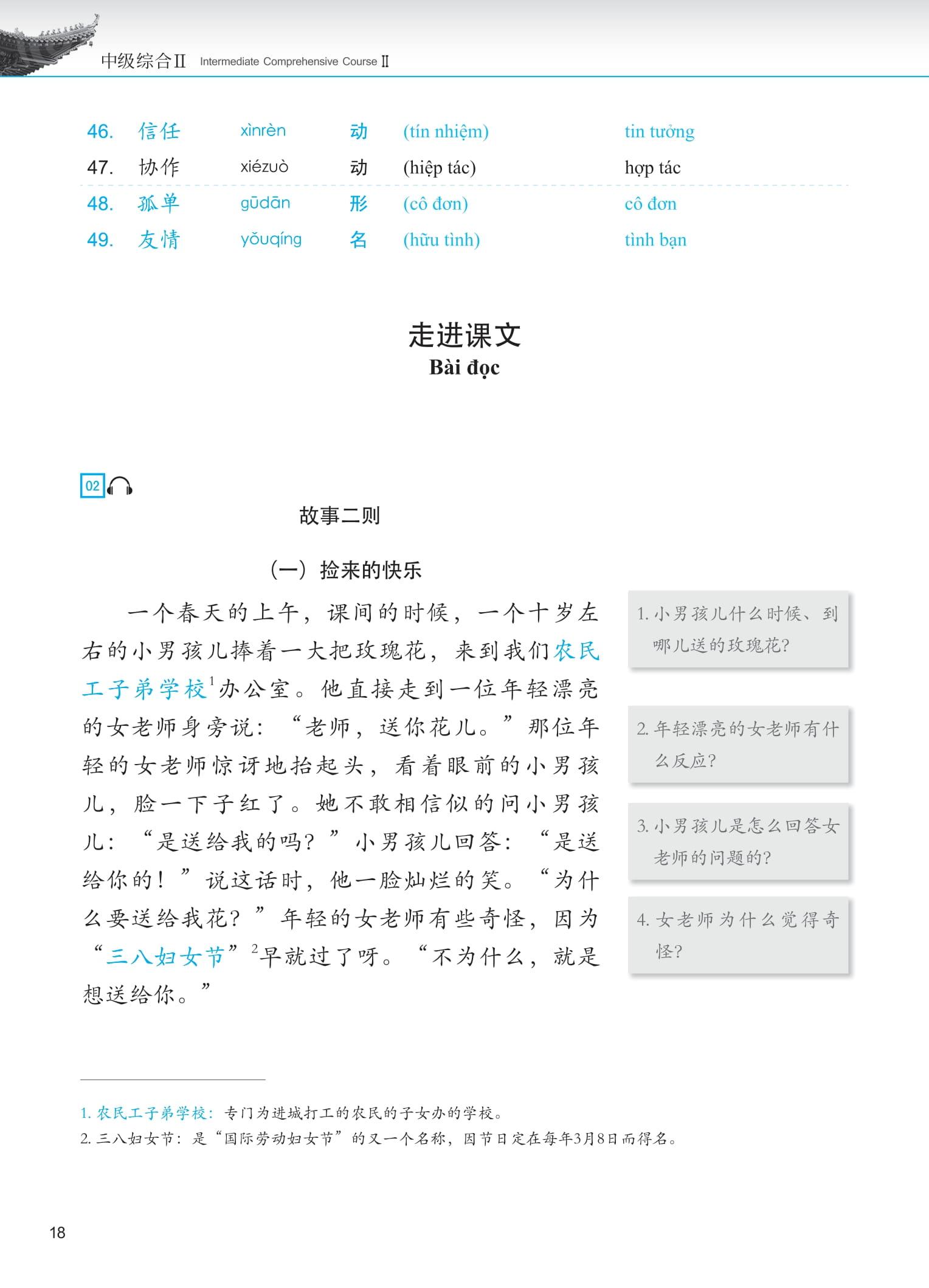 Giáo Trình Tiếng Trung Tổng Hợp - Trình Độ Trung Cấp - Tập 2 Bộ Giáo trình tiếng Trung bậc đại học theo chuẩn mới được biên soạn dựa theo Bộ tiêu chuẩn phân cấp