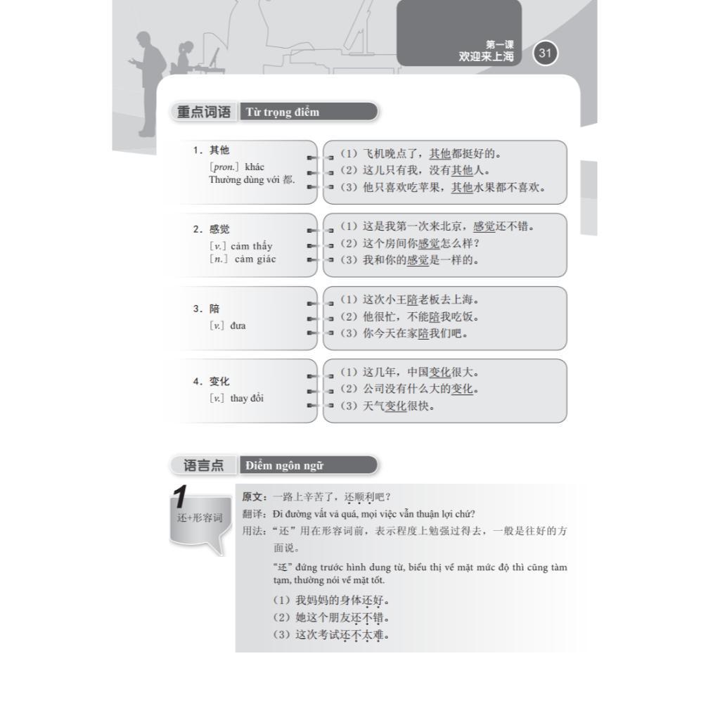 Hướng đến đối tượng người học trong và ngoài nước, sinh viên nước ngoài, cá nhân hoặc tập thể có nhu cầu học tiếng Hán thương mại trong các công ty. Tuyển tập gồm 5 quyển, mỗi quyển có mục tiêu đào tạo và tiêu chí đánh giá trình độ Tiếng Hán thương mại riêng, cụ thể như sau: Quyển 1 : Đạt trình độ có thể vận dụng tiếng Hán để giao tiếp cơ bản trong các tình huống thường ngày liên quan đến thương mại. Quyển 2 : Đạt trình độ có thể vận dụng tiếng Hán để giao tiếp cơ bản trong các tình huống xã giao liên quan đến thương mại. Quyển 3 : Đạt trình độ có thể vận dụng tương đối có hiệu quả tiếng Hán để giao tiếp trong các hoạt động thương mại. Quyển 4: Đạt trình độ có thể vận dụng tương đối thuần thục tiếng Hán để giao tiếp trong các hoạt động thương mại. Quyển 5: Đạt trình độ có thể vận dụng trôi chảy, tự nhiên tiếng Hán để giao tiếp trong các hoạt động thương mại. Xu hướng nhất thể hóa kinh tế thế giới đang không ngừng lớn mạnh, hoạt động giao lưu hợp tác kinh tế mậu dịch giữa các quốc gia trên thế giới với Trung Quốc đang phát triển cả về chiều rộng và chiều sâu, vì vậy tiếng Hán thương mại được sử dụng ngày càng phổ biến. Bộ giáo trình là người bạn đồng hành của các bạn học tiếng Trung.