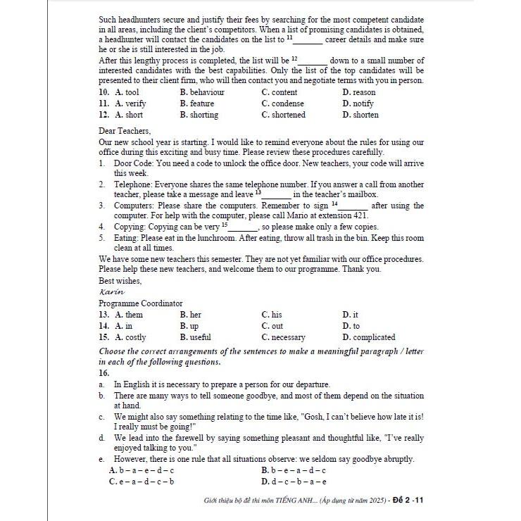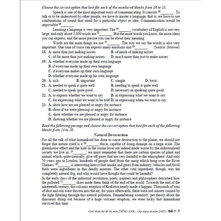 gồm các đề thi dựa trên nội dung Chương trình Giáo dục phổ thông 2018 môn Tiếng Anh.