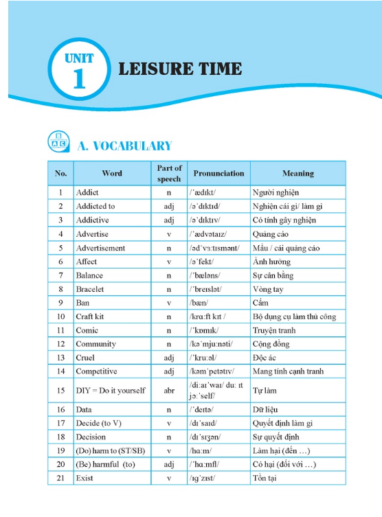 PARTA: VOCABULARY (Từ vựng theo từng đơn vị bài học)