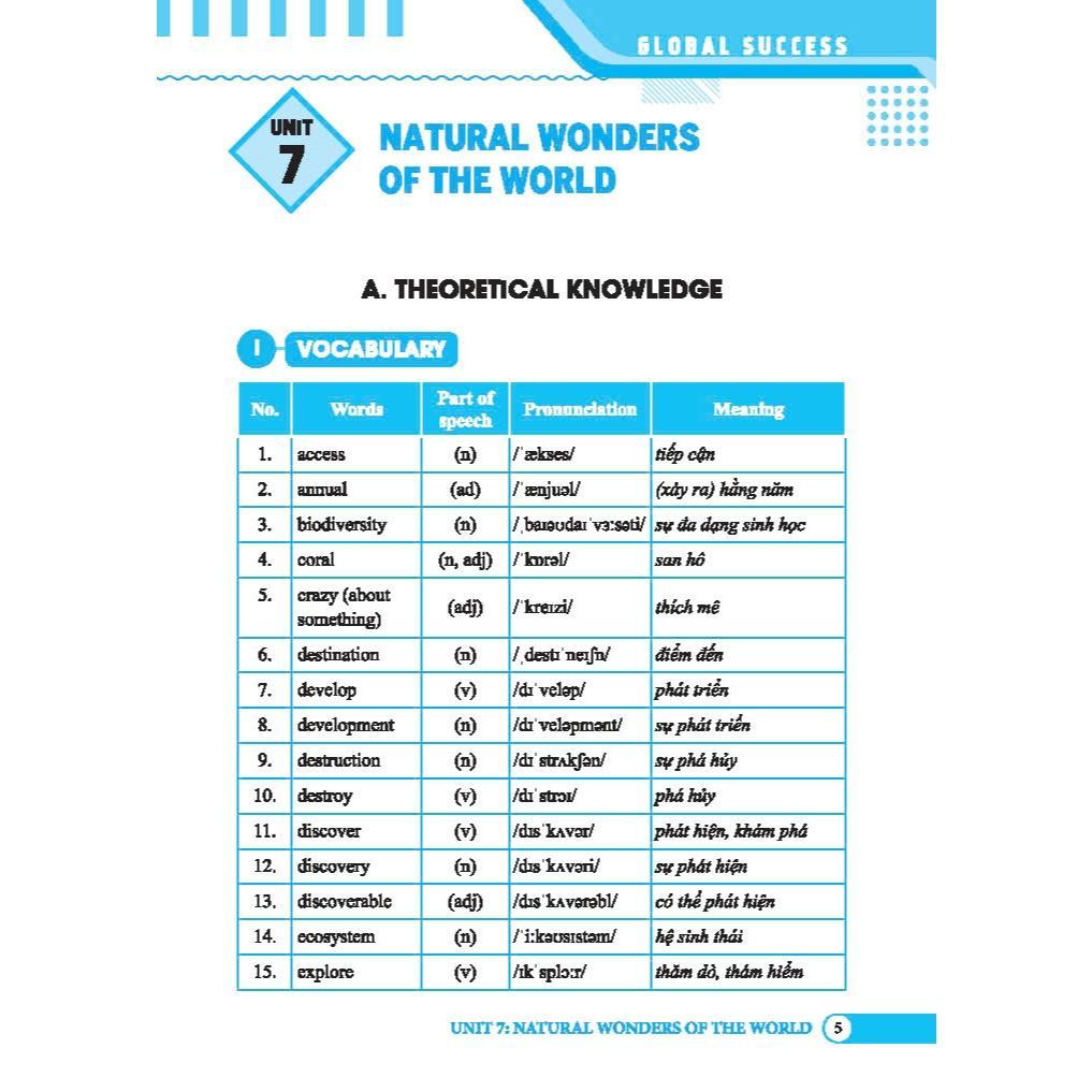 Cuốn sách bao gồm 6 đơn vị bài học từ unit 7 - unit 12 theo chương trình sách giáo khoa GLOBAL SUCCESS