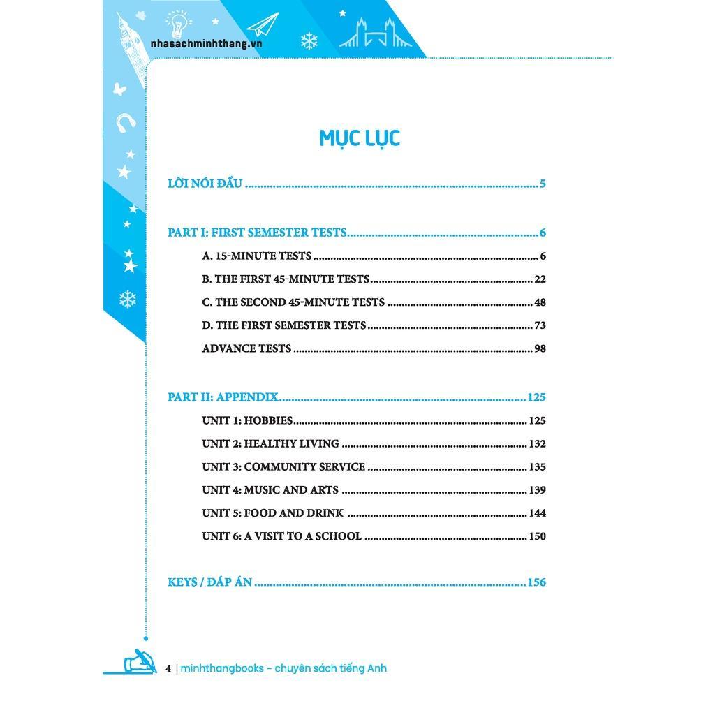 Nội dung cuốn sách hoàn toàn bám sát chương trình, sách giáo khoa và được thể hiện dưới các đề kiểm tra trắc nghiệm và tự luận. Thông qua việc làm các bài kiểm tra, các em học sinh có thể xác định mức độ hiểu bài và các kỹ năng cần phải củng cố thêm. 7 gồm 2 tập.