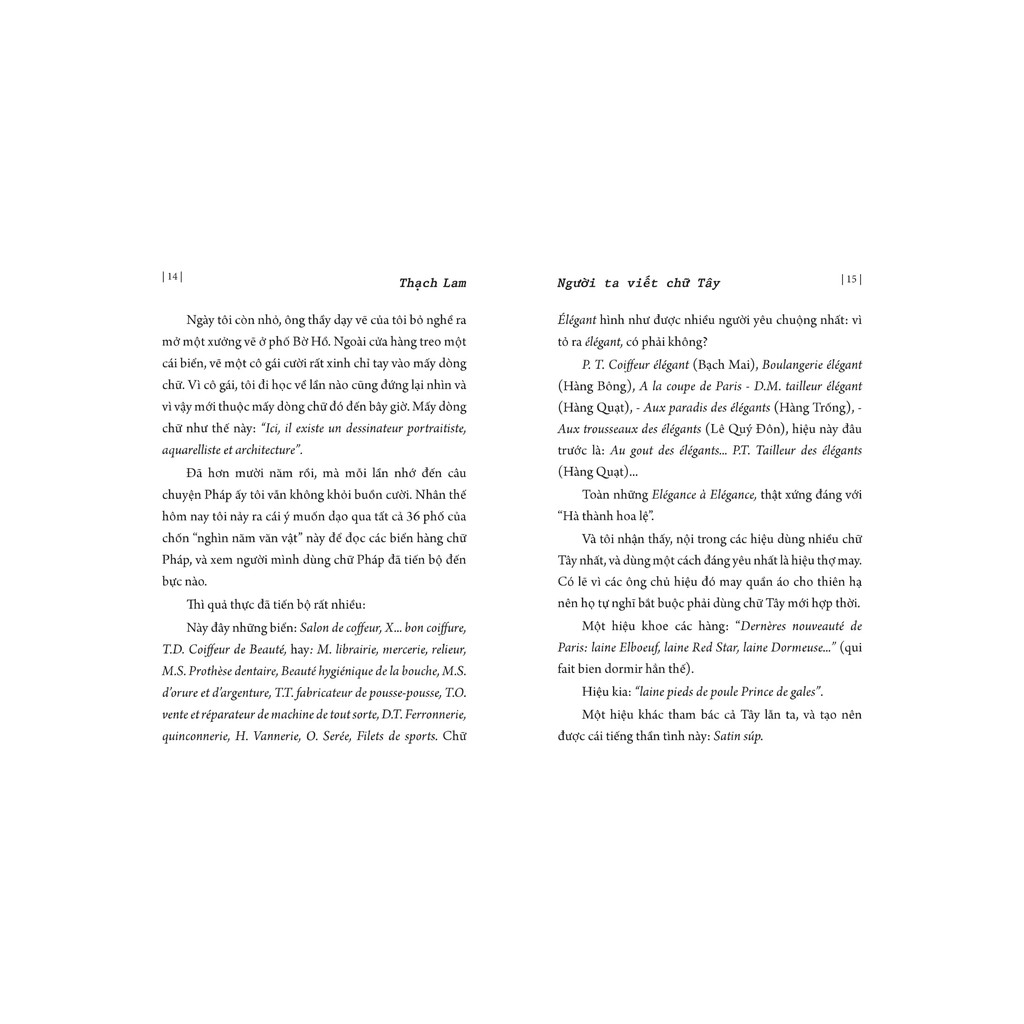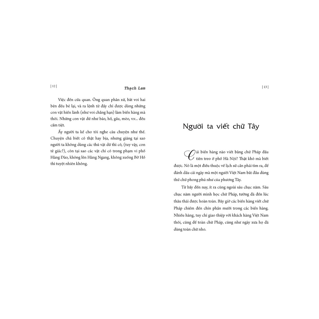 Chúng ta cũng có Hà Nội, một thành phố có nhiều vẻ đẹp, vì Hà Nội đẹp thật (chúng ta chỉ còn tìm những vẻ đẹp ấy ra), và cũng vì chúng ta yêu mến. Yêu mến Hà Nội với tâm hồn người Hà Nội, cũng như người Parisien chính hiệu yêu mến P Trong những cuộc phiếm du, - phiếm du ngoài các phố Hà Nội là một cái thú vô song chỉ người Hà Nội có - ta nên chú ý đến những nét đổi thay của thành phố, nên nhận xét những vẻ đẹp cũng như vẻ xấu của phố phường, thân mật với những thú vui chơi hay những cảnh lầm than, với những người Hà Nội cũng như ta.