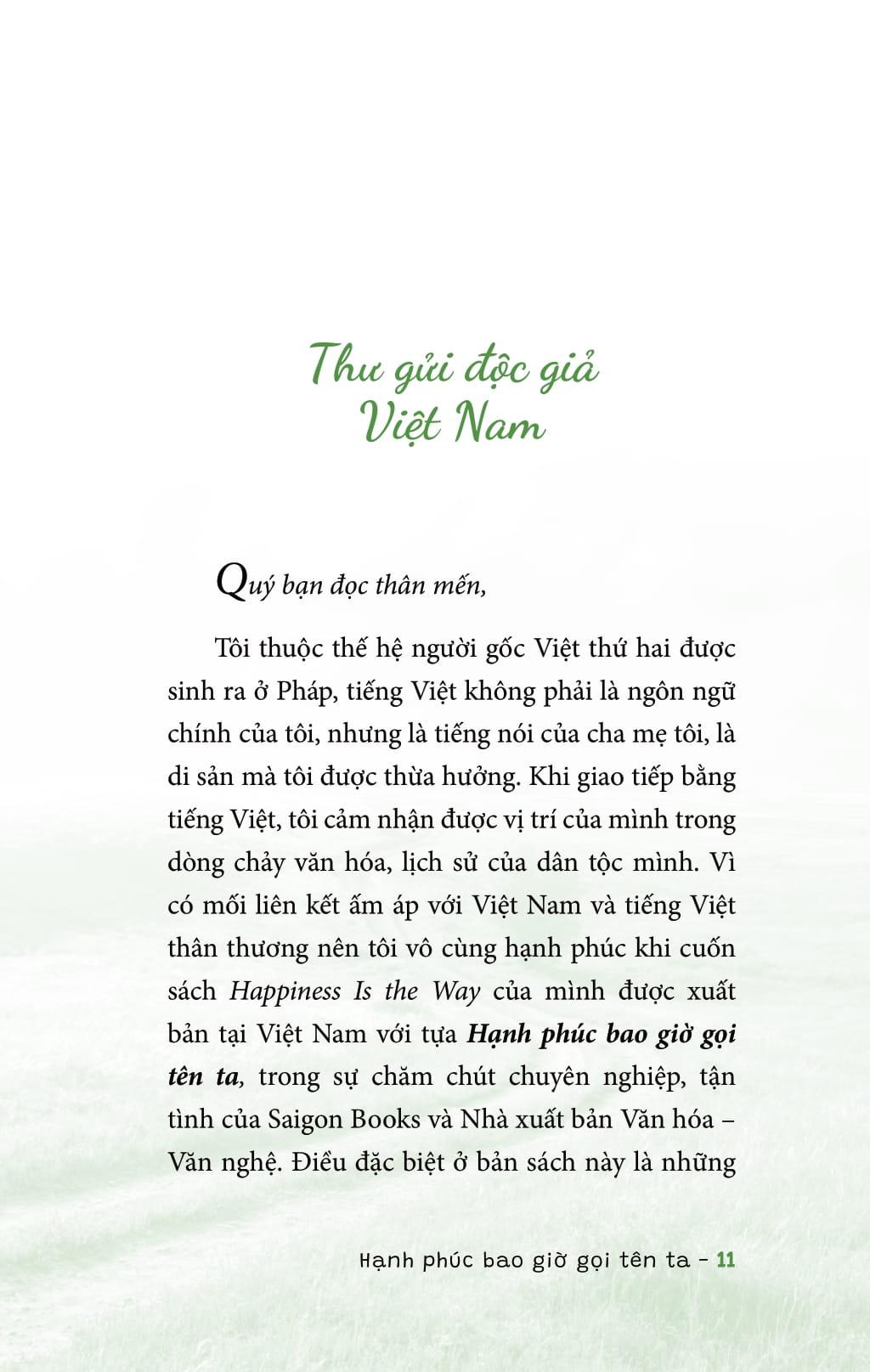 Cuốn sách "Hạnh Phúc Bao Giờ Gọi Tên Ta" của tác giả My Holland là một hành trình khám phá sâu sắc về khái niệm hạnh phúc và cách để từng bước xây dựng nó trong cuộc sống hằng ngày. Được viết bằng giọng văn chân thành, gần gũi, cuốn sách không chỉ mang đến những lý thuyết về tâm lý học mà còn là những trải nghiệm thực tế, bài học quý giá từ chính cuộc sống của tác giả.