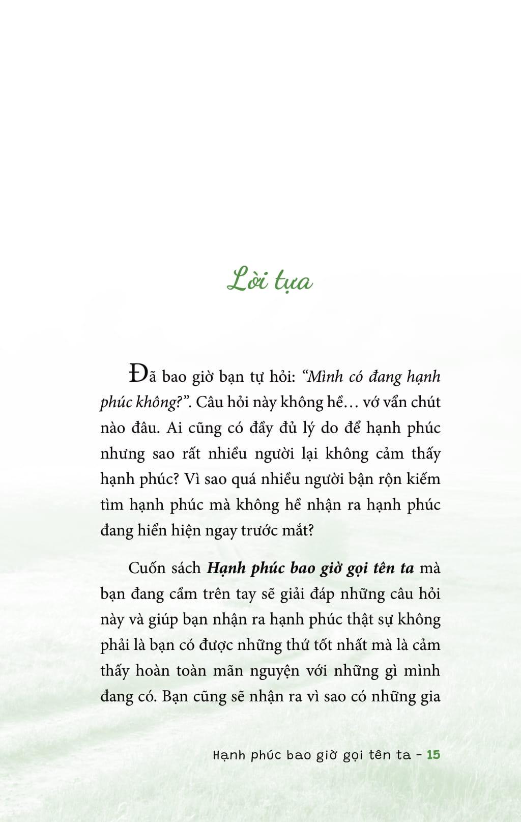 "Hạnh Phúc Bao Giờ Gọi Tên Ta" là một cuốn sách không thể bỏ qua cho những ai đang tìm kiếm sự bình yên trong tâm hồn và hạnh phúc thực sự. Tác phẩm này không chỉ dừng lại ở lý thuyết mà còn khuyến khích độc giả hành động và thực hiện những thay đổi tích cực trong cuộc sống. Cuốn sách chắc chắn sẽ là một người bạn đồng hành quý giá trong hành trình khám phá bản thân và tìm kiếm hạnh phúc thực sự.