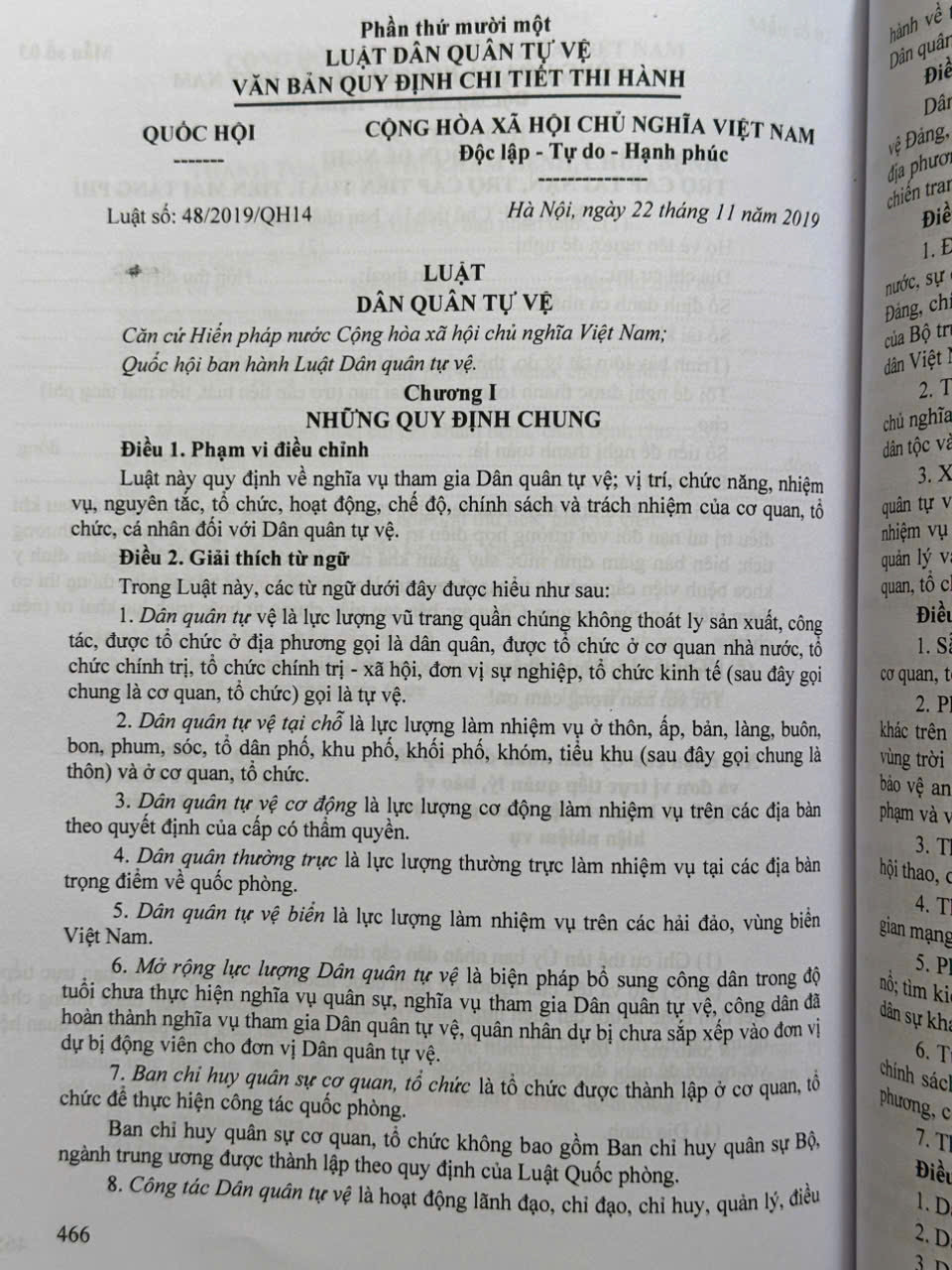 Phần thứ mười một. LUẬT DÂN QUÂN TỰ VỆ VÀ VĂN BẢN QUY ĐỊNH CHI TIẾT THI HÀNH