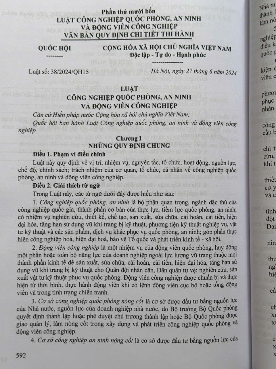Phần thứ mười bốn. LUẬT CÔNG NGHIỆP QUỐC PHÒNG, AN NINH VÀ ĐỘNG VIÊN CÔNG NGHIỆP VÀ VĂN BẢN QUY ĐỊNH CHI TIẾT THI HÀNH