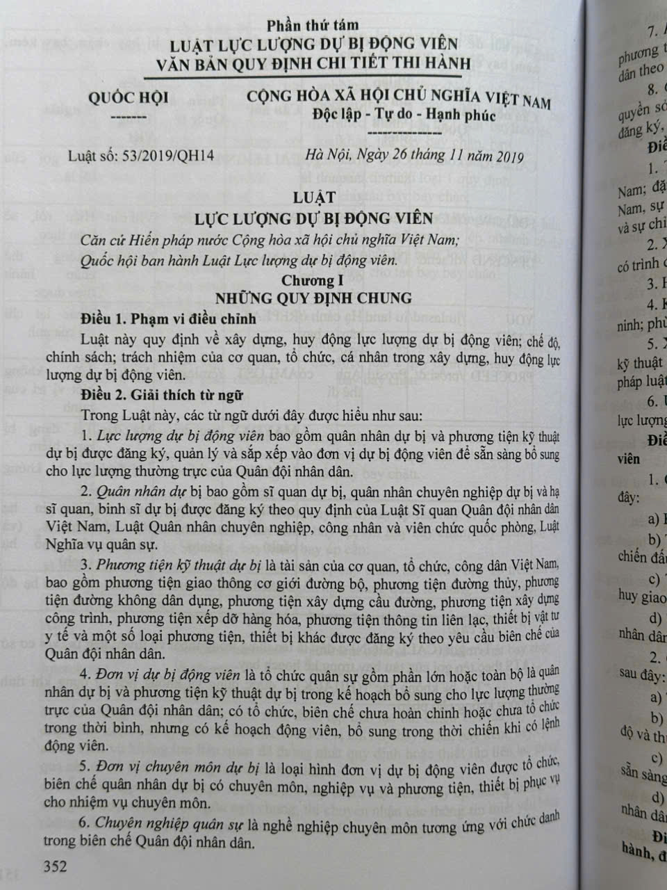 Phần thứ tám. LUẬT LỰC LƯỢNG DỰ BỊ ĐỘNG VIÊN VÀ VĂN BẢN QUY ĐỊNH CHI TIẾT THI HÀNH