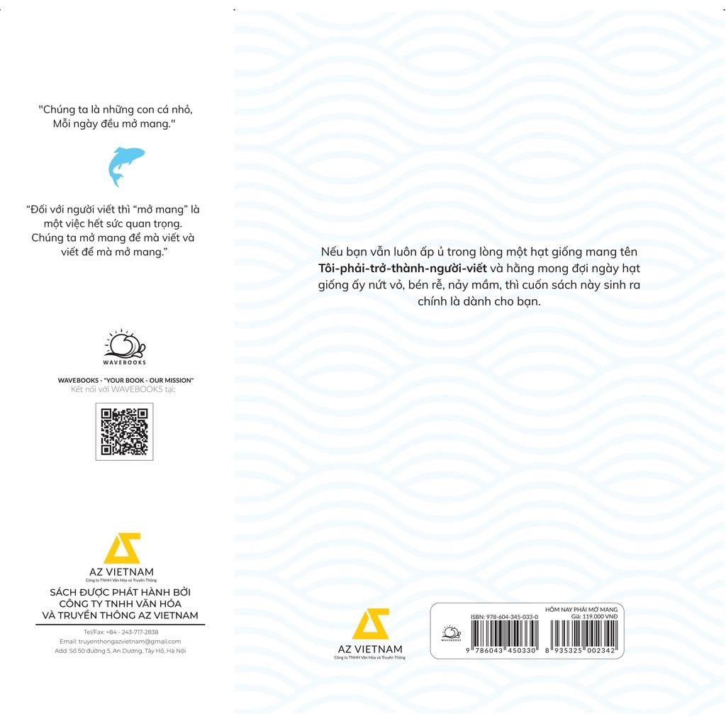 Hôm Nay Phải Mở Mang: (Một tựa sách của Ngày ngày viết chữ dành cho người học viết và làm nghề viết) Bạn có ý định trở thành một người viết nhưng còn nhiều đắn đo, bỡ ngỡ? Bạn muốn theo đuổi nghề viết, song bản thân vẫn còn hoang mang và chưa biết bắt đầu từ đâu? Dù viết lách trong lĩnh vực nào, chỉ cần trong lòng bạn đang ấp ủ hạt giống mang tên Tôi-phải-trở-thành-người-viết và hằng mong đợi ngày hạt giống ấy nứt vỏ, bén rễ, nảy mầm thì cuốn sách Hôm Nay Phải Mở Mang dành cho bạn - những người học viết và làm nghề viết. Đây là cuốn sách mới nhất của tác giả Nguyễn Thuỳ Dung - người sáng lập fanpage Ngày Ngày Viết Chữ đã cán mốc hơn 190.000 lượt theo dõi, từng gây ấn tượng với tác phẩm Chữ Xưa Còn Một Chút Này. Nói về nghề viết hiện đại có thể phân chia thành hai mảng lớn: viết trong ngành MarCom (Marketing Communications) và văn chương. Hai lĩnh vực này đang giao thoa mạnh mẽ. Bằng kinh nghiệm thực tiễn, tác giả Nguyễn Thuỳ Dung đã “chia sẻ cho kỳ hết” vốn kinh nghiệm viết lách phù hợp với những người dấn thân vào nghề viết. Sách gồm hai phần chính: Phần Một nói về Đọc – Nghe – Viết – Sửa, bốn việc phải làm thường xuyên của người viết. Phần Hai nói về một số kỹ năng, kinh nghiệm cần thiết đối với người viết. Sách còn có Phần Mở rộng tổng hợp các mô hình và cấu trúc bài viết trong ngành MarCom... Hôm Nay Phải Mở Mang là cuốn sách không quá từ chương, không quá giáo khoa khuôn phép, sách được trình bày rất cô đọng, súc tích, đi vào trọng tâm. Cuốn sách như một công cụ thiết thân, một kho tài liệu kèm chỉ dẫn phong phú để bạn đọc thuận lợi mở mang. Hôm Nay Phải Mở Mang cũng có thể được xem như một người cố vấn đáng tin, một người bạn viết gần gũi để bạn đọc thêm vững bước trên con đường trở thành người viết, đặc biệt là các bạn đang muốn dấn thấn vào các lĩnh vực sáng tạo nội dung và các lĩnh vực liên quan đến chữ nghĩa nói chung. Sách được phát hành bởi thương hiệu sách Wavebooks với sứ mệnh trở thành người bạn đồng hành tin cậy cho quá trình phát triển kỹ năng và tâm hồn người Việt trẻ.