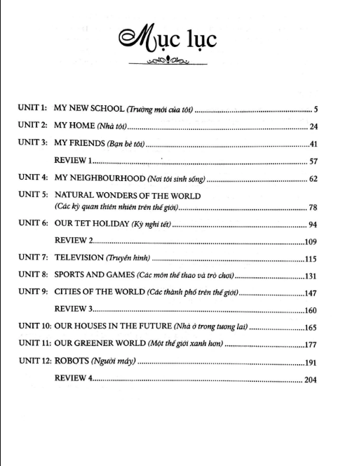 - Bài giải và bài dịch (Solutions & Translations): giải và dịch tất cả các bài hội thoại, bài đọc trong sách giáo khoa. (Lưu ý: Học sinh cần tự làm bài tập và nghe đĩa CD trước khi tham khảo phần này).
