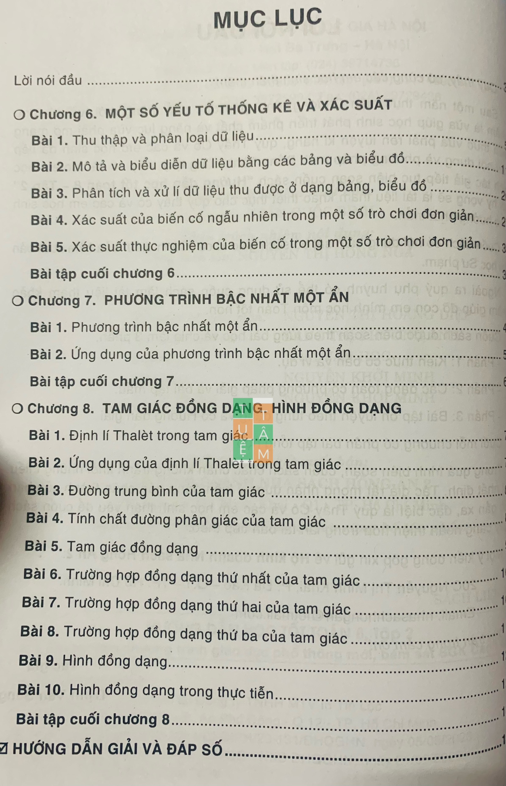 Sau một năm thực hiện chương trình giáo dục phổ thông mới, với phương châm là vừa giúp học sinh phát triển phẩm chất và năng lực vừa phải mở mang kiến thức vừa phải rèn luyện kĩ năng, quý thầy cô và các em học sinh đã tiếp cận nội dung và phương pháp mới. Đồng hành cùng quý thầy cô và các em học sinh, tác giả tiếp tục biên soạn cuốn sách “Hướng dẫn học tốt toán 8 – Tập 1” với hy vọng cuốn sách