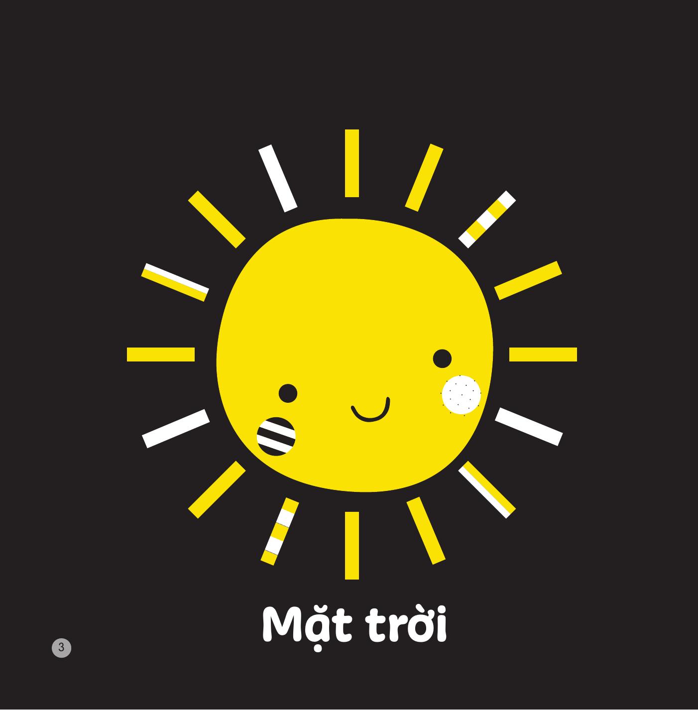 - Kích thích thị giác qua những bức tranh minh họa rõ nét, có độ tương phản cao trên các nền màu trơn. Bộ sách đạt chuẩn chất lượng sách phát triển thị giác: mỗi trang sách đều đơn giản, chỉ có một hình ảnh lớn trên nền màu, giúp bé tập trung mắt và học hỏi tốt nhất về hình ảnh được xem.