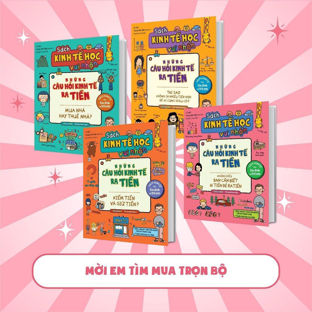 Bộ sách "Kinh tế học vui nhộn" gồm 4 cuốn: - Kiếm tiền và giữ tiền. - Mua nhà hay thuê nhà. - Tại sao không in nhiều tiền hơn để ai cũng giàu có? - Những điều bạn cần biết để tiền đẻ ra...
