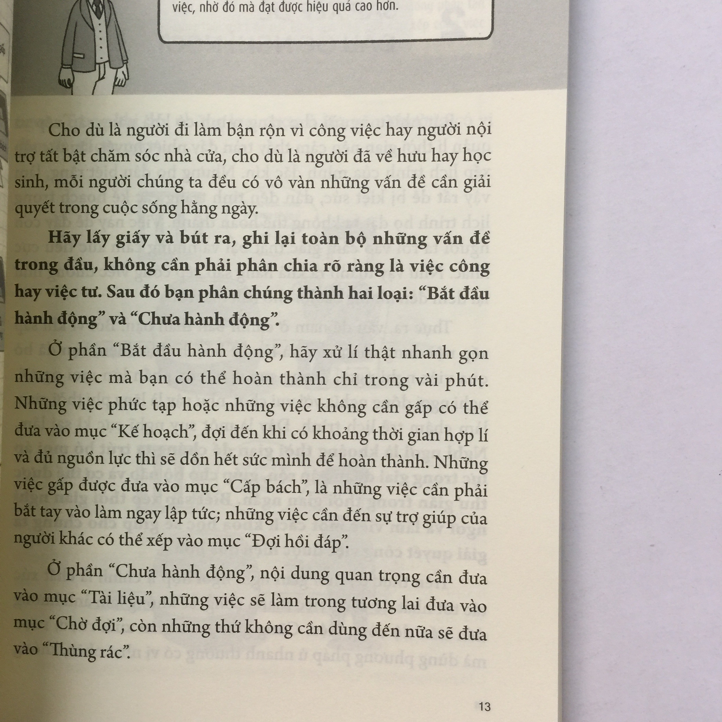 Bạn có từng gặp phải những tình huống sau đây tại nơi làm việc hay không: rõ ràng nhớ là đặt đồ trên bàn làm việc nhưng bạn hoàn toàn không thể tìm thấy chúng; những tài liệu, giấy tờ đều chất đống trên bàn làm việc, thật khó để lấy ra tài liệu mỗi khi cần đến; luôn bị sếp phê bình vì không làm việc chăm chỉ … Nếu bạn có bất kì biểu hiện nào trong số đó thì hãy đọc cuốn sách này, mọi vấn đề rắc rối của bạn sẽ được giải quyết! Cuốn sách được trình bày bằng những ví dụ thực tiễn và minh họa sinh động, giúp bạn đọc làm quen khái niệm và nắm bắt dễ kĩ năng sắp xếp công việc vô cùng quan trọng trong công việc và cuộc sống của mình. Cảm ơn bạn đã tham khảo cuốn sách này. Chúc một ngày tốt lành!