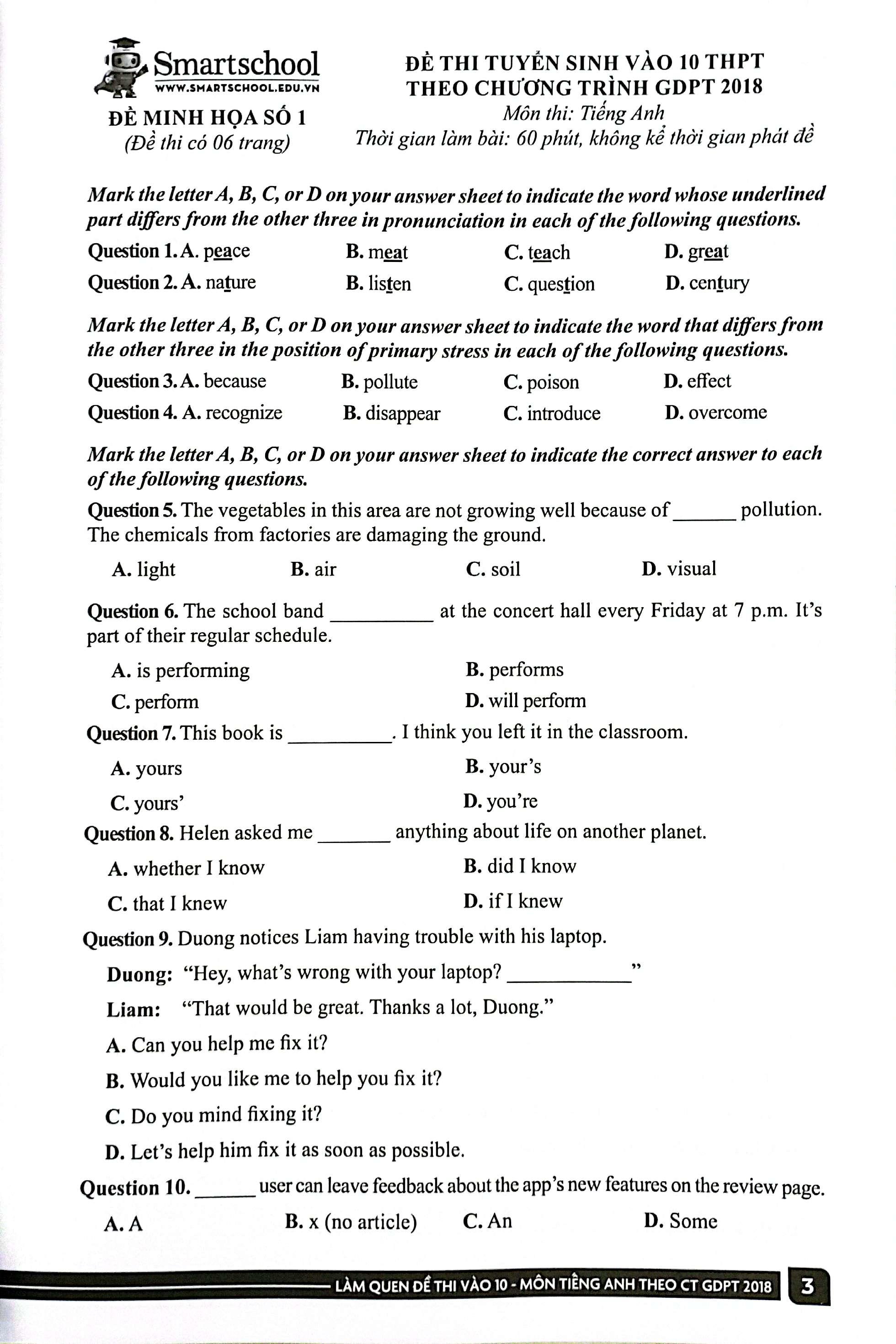 Mua tại TiktokLàm Quen Đề Thi Vào 10 - Môn Tiếng Anh - Theo CT GDPT 2018 - Dành Cho Học Sinh
