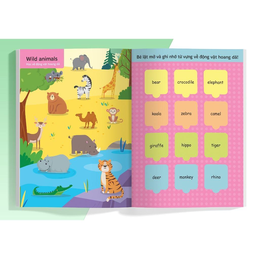 Điểm đặc biệt của cuốn sách là tất cả các từ vựng được hình ảnh hóa qua bức tranh đầy màu sắc và xuất hiện đầy bất ngờ thông qua các miếng lật mở. Với hình thức sách lật mở mới mẻ, trẻ em có thể tương tác với các miếng lật mở và khám phá những hình ảnh chân thực của từng miếng lật mở 2D, từ đó giúp bé ghi nhớ từ mới nhanh chóng và phát triển khả năng tưởng tượng.